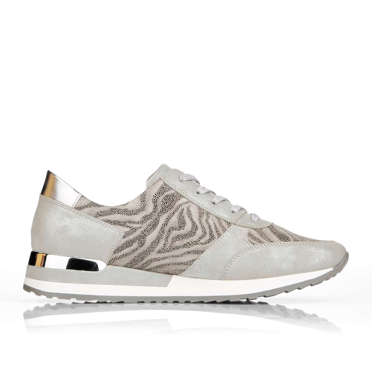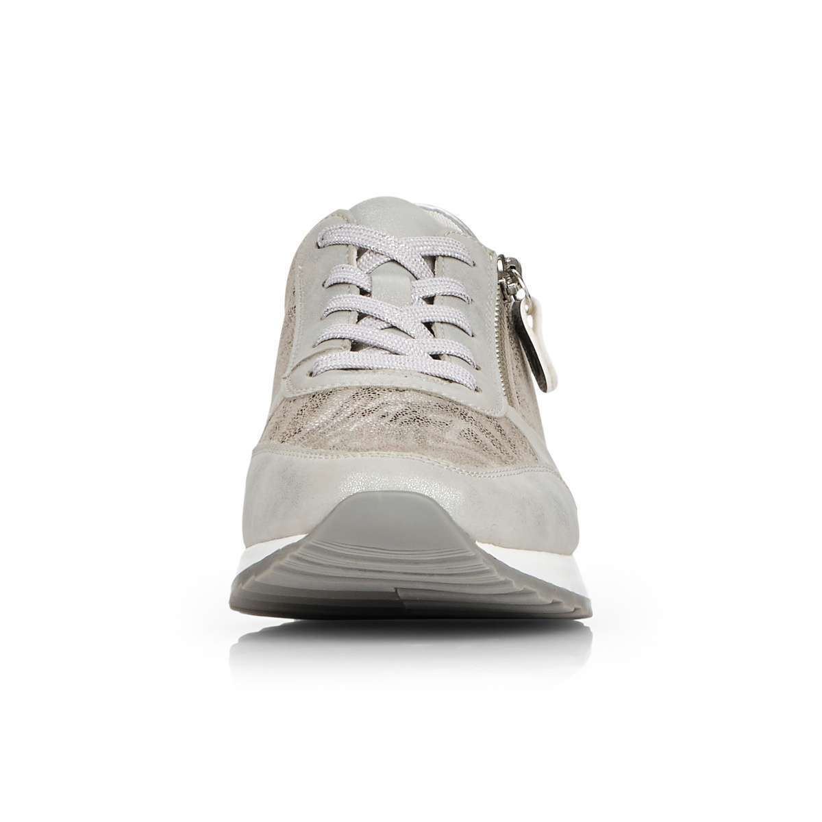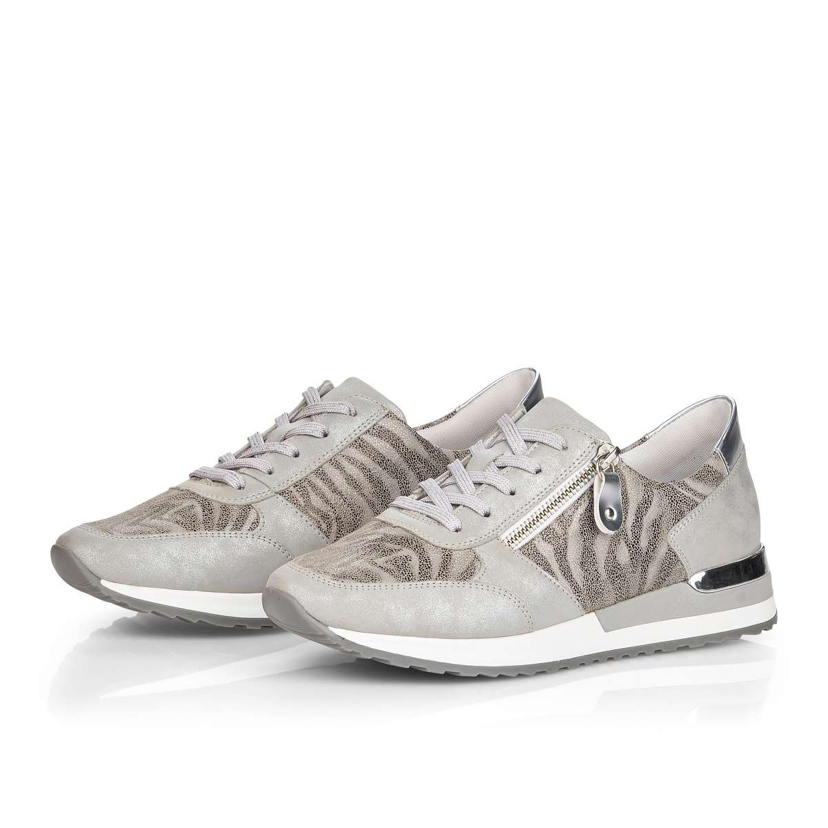 Obuv REMONTE je vyšší řadou značky RIEKER, obuv se vyznačuje kvalitou použitých materiálů, komfortnější šířkou a nadměrnými velikostmi. Tato dámská teniska Vás zaujme na první pohled svým jedinečným zpracováním. Propojení odlišných designových materiálů, jednoduché šněrování, zip na vnější straně či kontrastní podešev se stříbrnou ozdobou to jsou zdobné znaky této obuvi. Pro Vaše pohodlí na každém kroku je paměťová stélka vyjímatelná. Tato obuv bude dobře vypadat s jakýmkoliv outfitem.