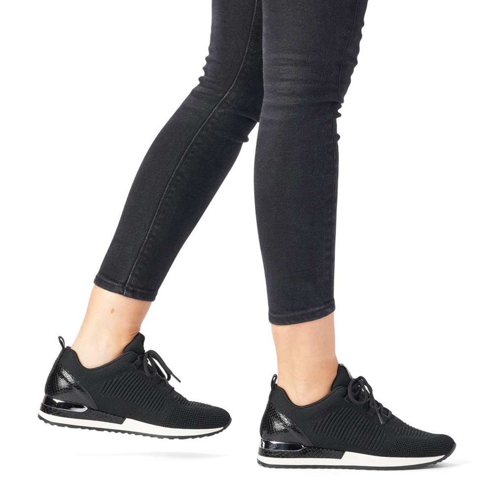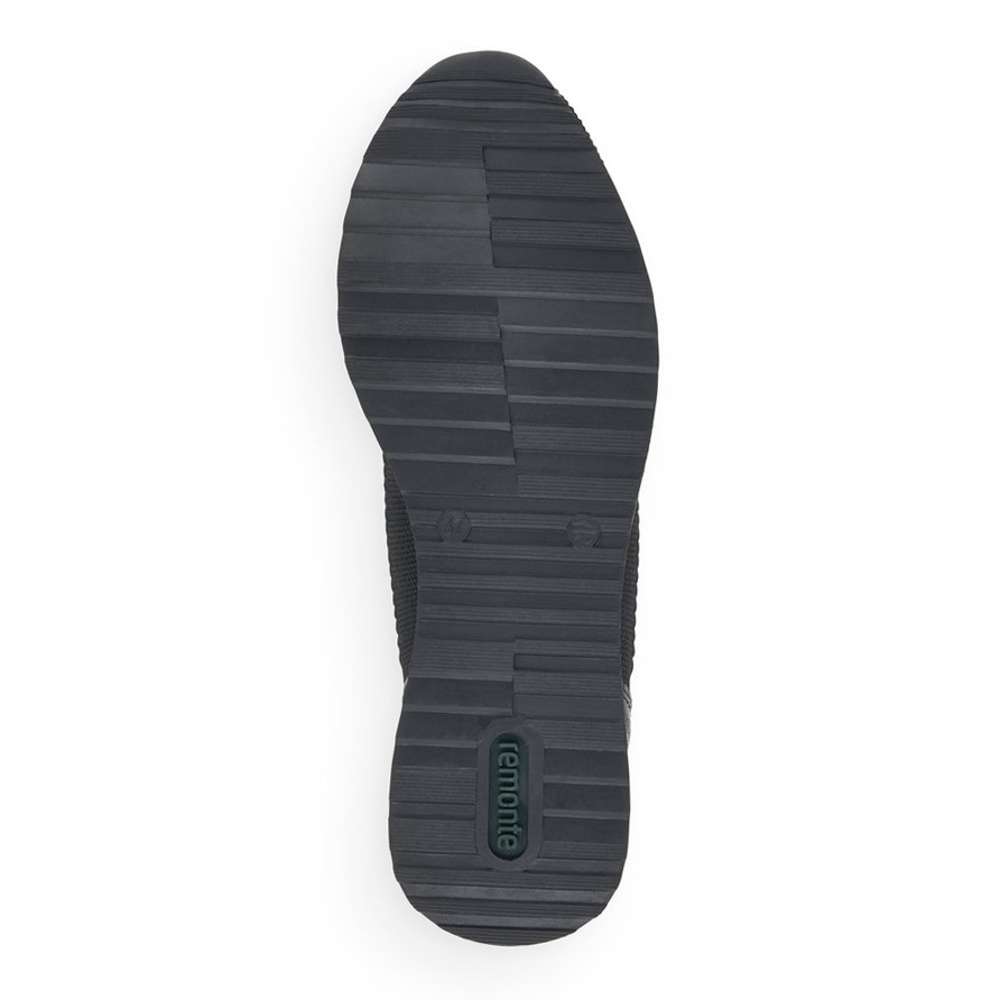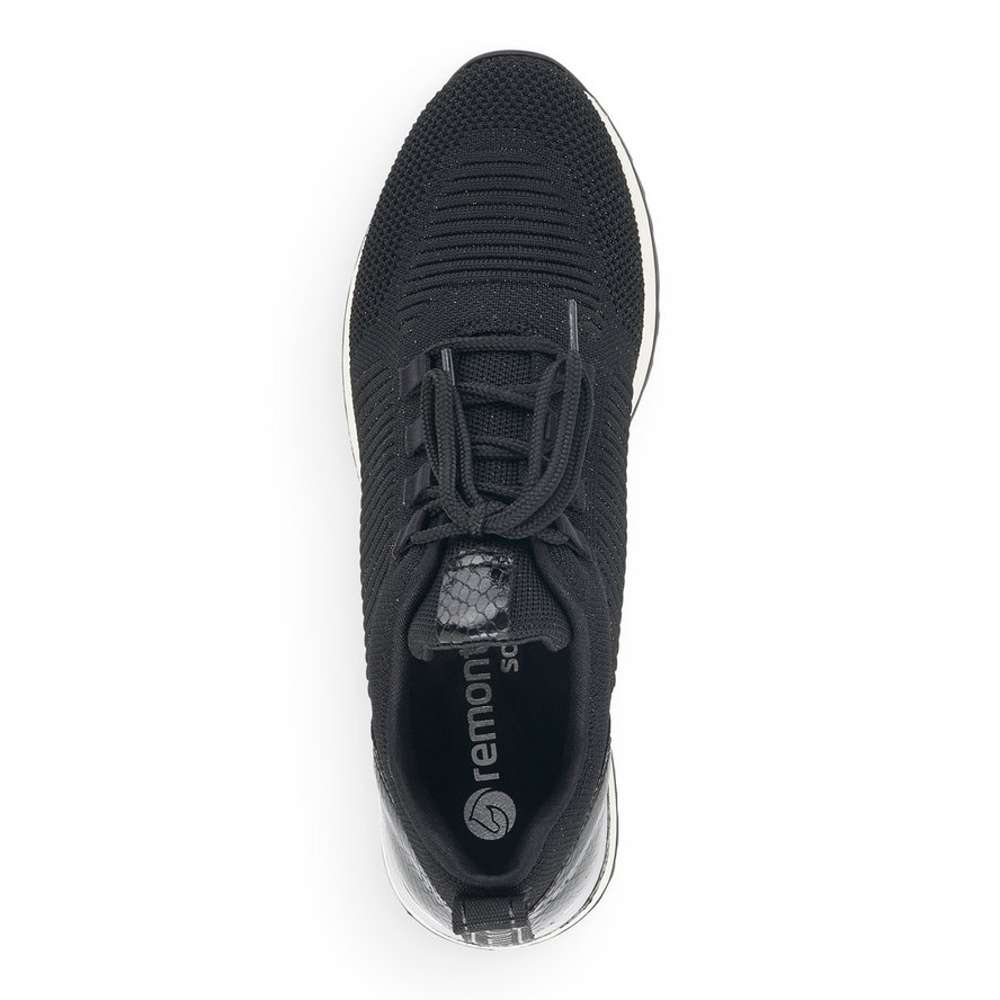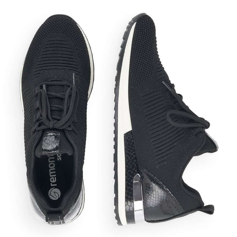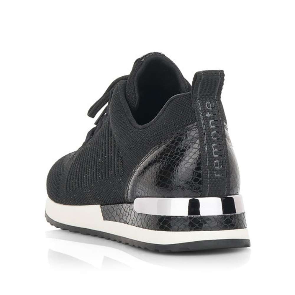 Obuv REMONTE je vyšší řadou značky RIEKER, obuv se vyznačuje kvalitou použitých materiálů, komfortnější šířkou a nadměrnými velikostmi. Tato dámská teniska Vás zaujme na první pohled svým jednoduchým zpracováním. Černý pružný svršek, prvky s hadím motivem či kontrastní podešev se stříbrnou aplikací, to jsou zdobné znaky této obuvi. Pro Vaše pohodlí na každém kroku je vyjímatelná stélka vyrobena z paměťové pěny. Boty z řady Remonte Vám zajistí maximální komfort, pohodlí při celodenním nošení a tento model je vhodný snad ke všem pracovním i běžným outfitům.