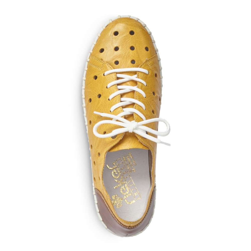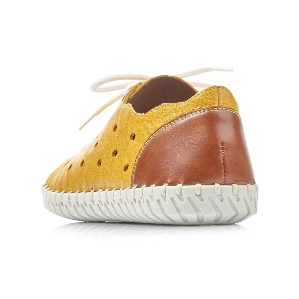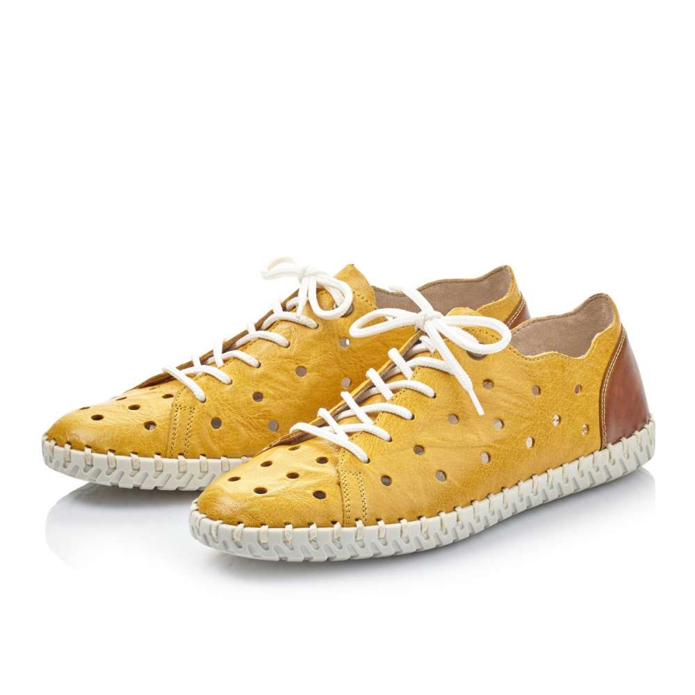 Tyto dámské tenisky byly vyrobeny za jedním jediným účelem, a to zajistit Vám potřebné pohodlí v letních dnech. Kožený svršek je pro odvětrávání perforován, na patě doplněn hnědou částí a horní okraj je elegantně zvlněn. Prošíváním je svršek výrazně spojen s podešví, které je lehká a flexibilní. Obuv si přizpůsobíte dle svých požadavků šněrováním a měkká kožená stélka dodá potřebný komfort na každém kroku. Tyto tenisky ideálně doplní Vaše outfity.