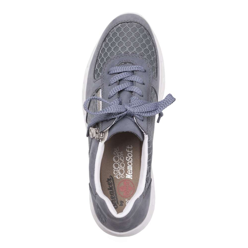 S těmito teniskami značky RIEKER se budete cítit po celý den jako v bavlnce. Svršek z pravé kůže je na špičce a po stranách doplněn o textilní části, které zajistí lepší odvětrávání obuvi. Snadné nazouvání zajistí funkční zip na vnější straně a přizpůsobit si obuv můžete šněrováním. Stélka je zde vyrobena z paměťové pěny a kontrastní bílá podešev dolaďuje celkový vzhled obuvi. Tyto tenisky oceníte při celodenním nošení a budou dobře vypadat jak s kalhotami, tak i se sukní.