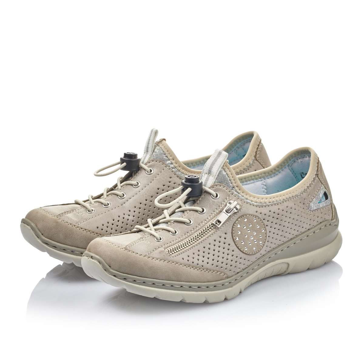 Dámské tenisky v šedé barvě jsou zdobené zipem a lesklými kamínky na vnější straně. Stahovací gumičkou si pak obuv upravíte přímo k vlastní noze. Technologie popsané níže se postarají o Vaše pohodlí na každém kroku. Tato teniska sportovního stylu je vhodná ke kalhotám na procházky, ale i k džínové sukni na pochůzky po městě.