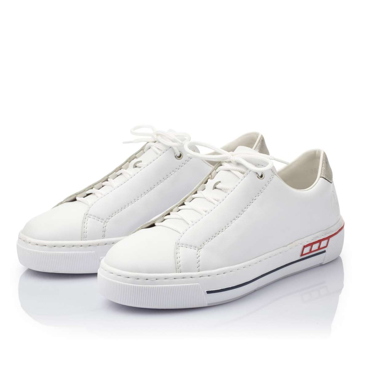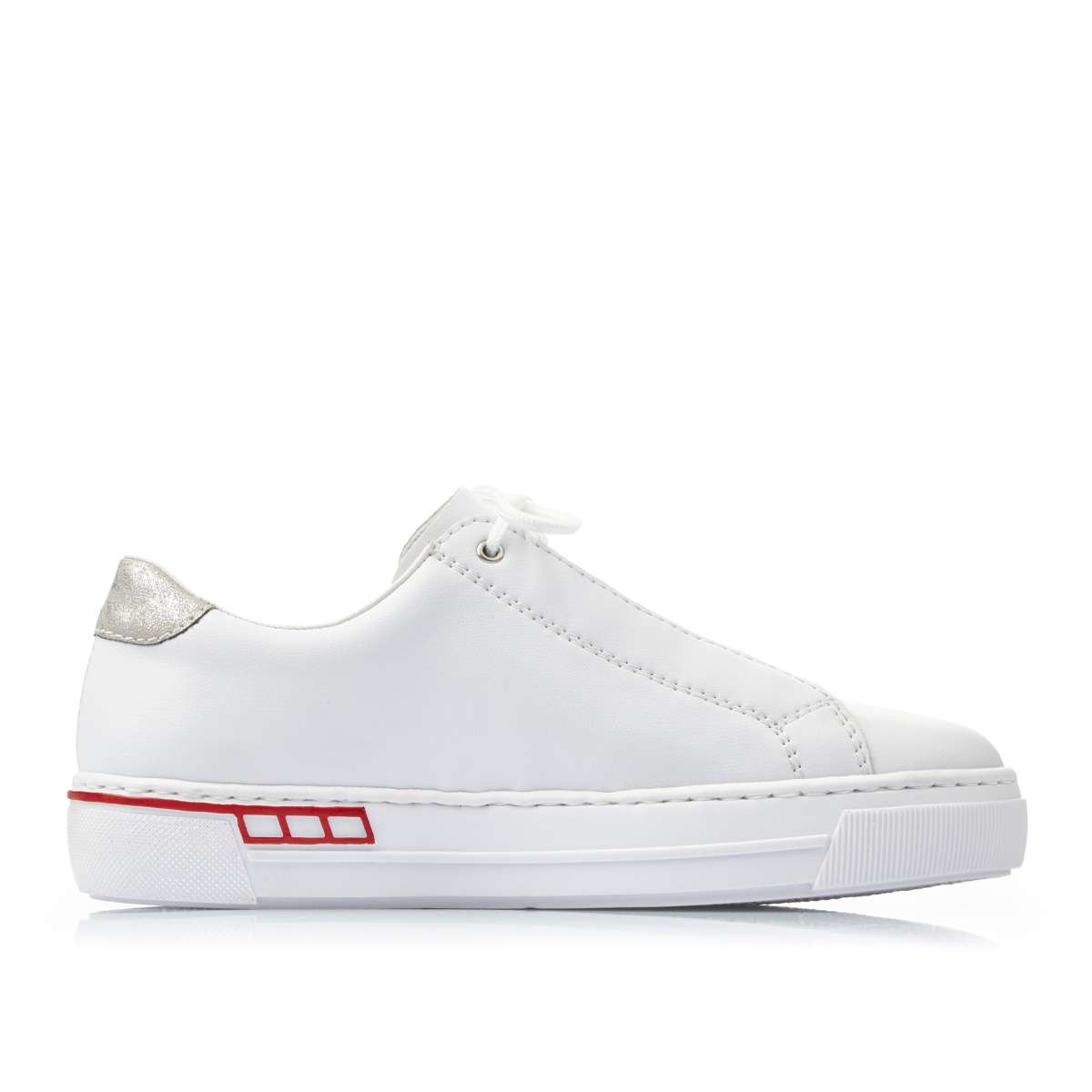 Jednoduchost je heslo, kterým se řídili designéři u této tenisky. Hladký svršek je zdoben prošíváním, vtlačeným logem značky a na bílé podešvi zdoben červeným a modrým pruhem. Snadné nazouvání a přizpůsobení dle Vašich požadavků zajistí šněrování a o pohodlí na každém kroku se postará měkká stélka. Tyto tenisky snadno sladíte s jakýmkoliv outfitem jak do práce, tak třeba na procházku s kamarádkami.