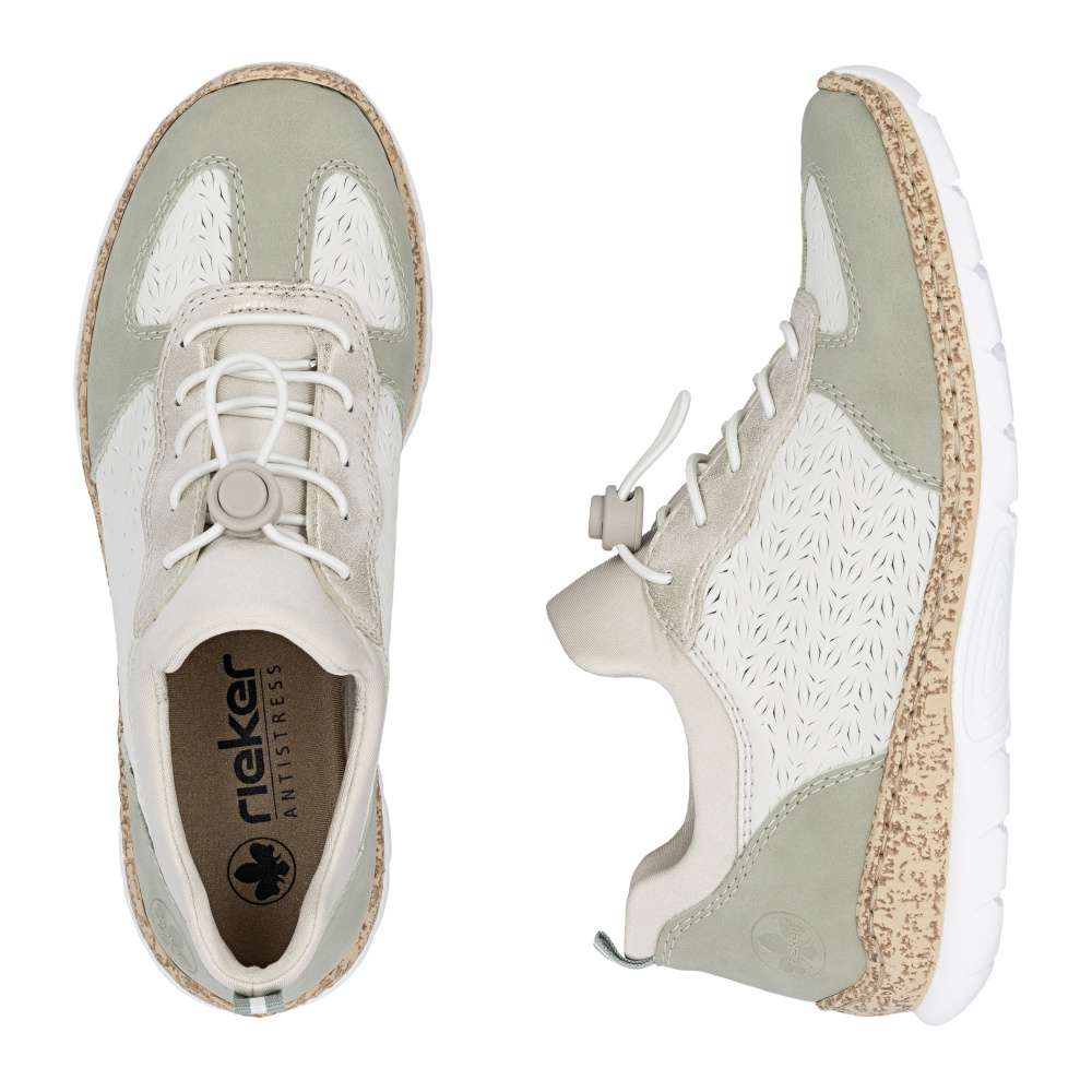 Tyto dámské tenisky upoutají kombinací různě barevných částí, které spolu harmonicky ladí a vytvářejí moderní vzhled. Stylová designová perforace dodává obuvi lehkost i originalitu a v horní části je model doplněn o světlý pružný materiál, který usnadňuje obouvání a zvyšuje pohodlí. Perfektní přizpůsobení zajistí šněrování pomocí pružné gumičky, kterou můžete decentně utáhnout podle svých potřeb. O měkký došlap se postará unikátní textilní stélka z paměťové pěny, jež se tvarově přizpůsobí vašemu chodidlu. Lehká a flexibilní podešev s technologií Antistress pak umocní celkový komfort při nošení. Praktické boty, které oceníte při každém kroku.