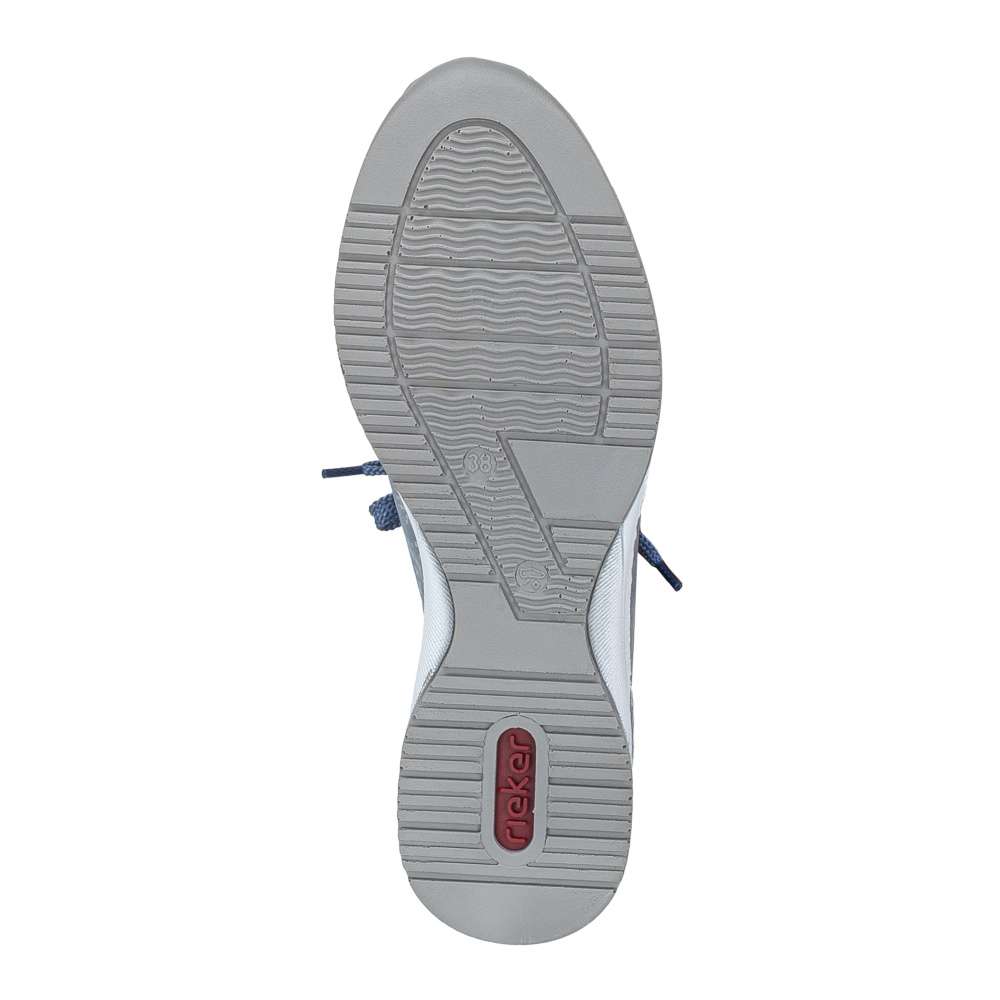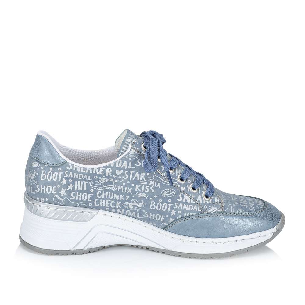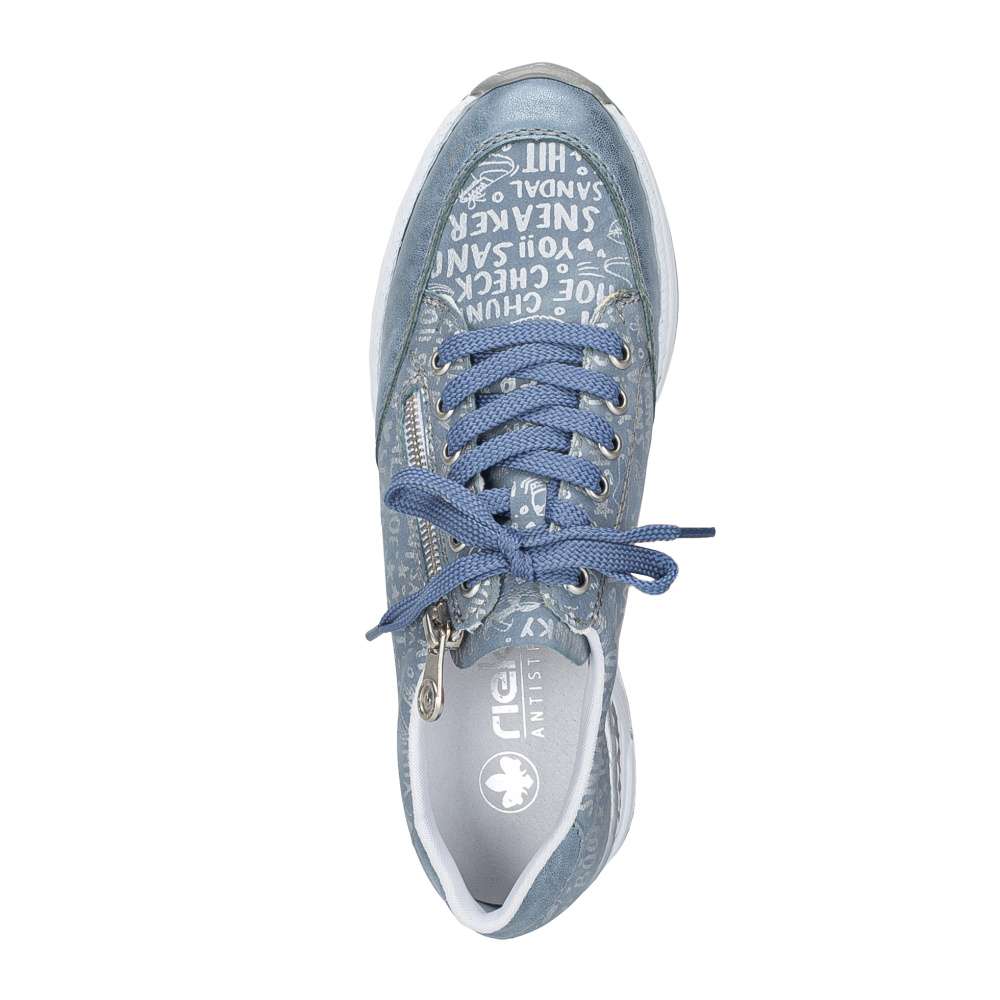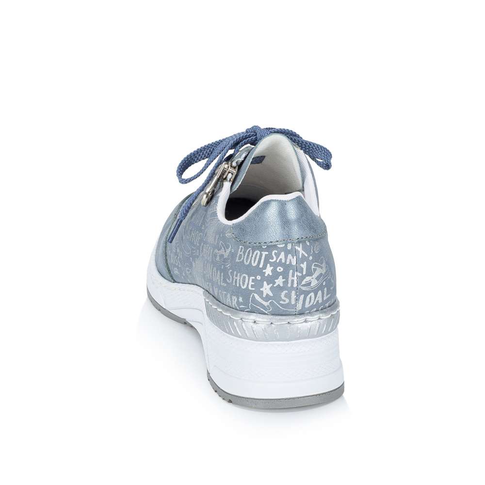 Každý detail těchto tenisek RIEKER je precizně přepracován tak, aby spojoval originální design s maximálním pohodlím. Modrý svršek zaujme dekorativními nápisy a efektními odlesky, které dodávají obuvi dynamický vzhled. Kombinace klasického šněrování a zipu v oblasti nártu zajišťuje snadné obouvání a zároveň umožňuje ideální přizpůsobení noze. Vyjímatelná kožená stélka je příjemná na došlap a poskytuje komfort i při celodenním nošení. Vyšší podešev v originálním stylu značky RIEKER nejen podtrhuje design tenisek, ale zároveň tlumí nárazy při chůzi a zajišťuje stabilitu při každém kroku. Tyto tenisky jsou ideální volbou pro ženy, které chtějí vyniknout stylem, ale zároveň si potrpí na pohodlí a kvalitu při každodenních aktivitách.