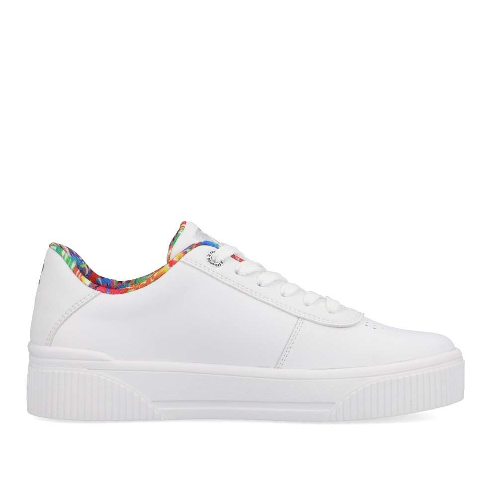 Rieker Revolution je nová řada moderní sportovní obuvi s obrovským důrazem na komfort a pohodlí i při celodenním nošení. Krásná bílá teniska Rieker s barevným lemem kolem kotníku Vám nesmí uniknout. Šněrováním si boty ideálně přizpůsobíte noze. Bota je vybavena extra měkkou a vyjímatelnou stélkou pro dokonalý pocit pohodlí. Oceníte neutrální vzhled při oblékání a nemusíte moc přemýšlet jakou barevnou kombinaci k nim zvolíte.