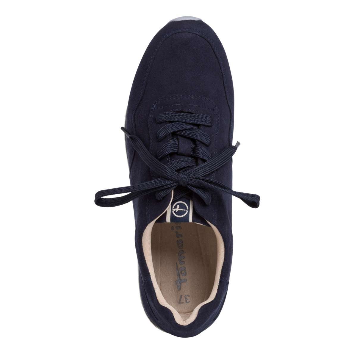 Dámské tenisky Tamaris v tmavě modré barvě mají kulatou špičku a lehce zvýšenou podešev. Jednoduchý hladký textilní svršek snadno sladíte se svým outfitem ať už vyrazíte na procházku s rodinou, tak na pochůzky po městě či do práce.