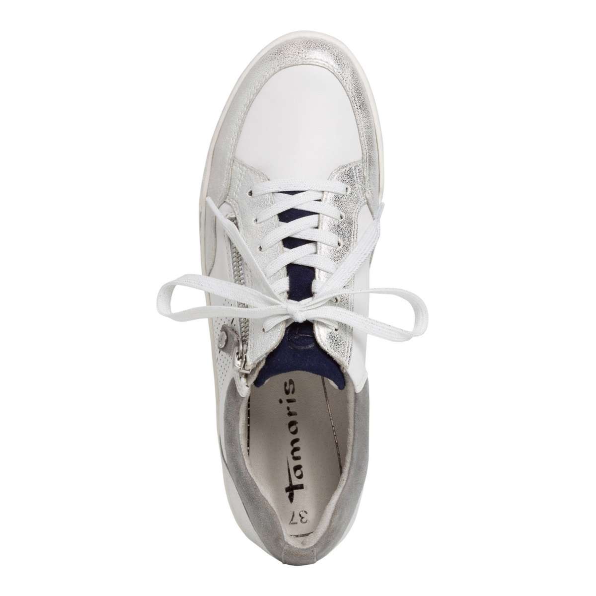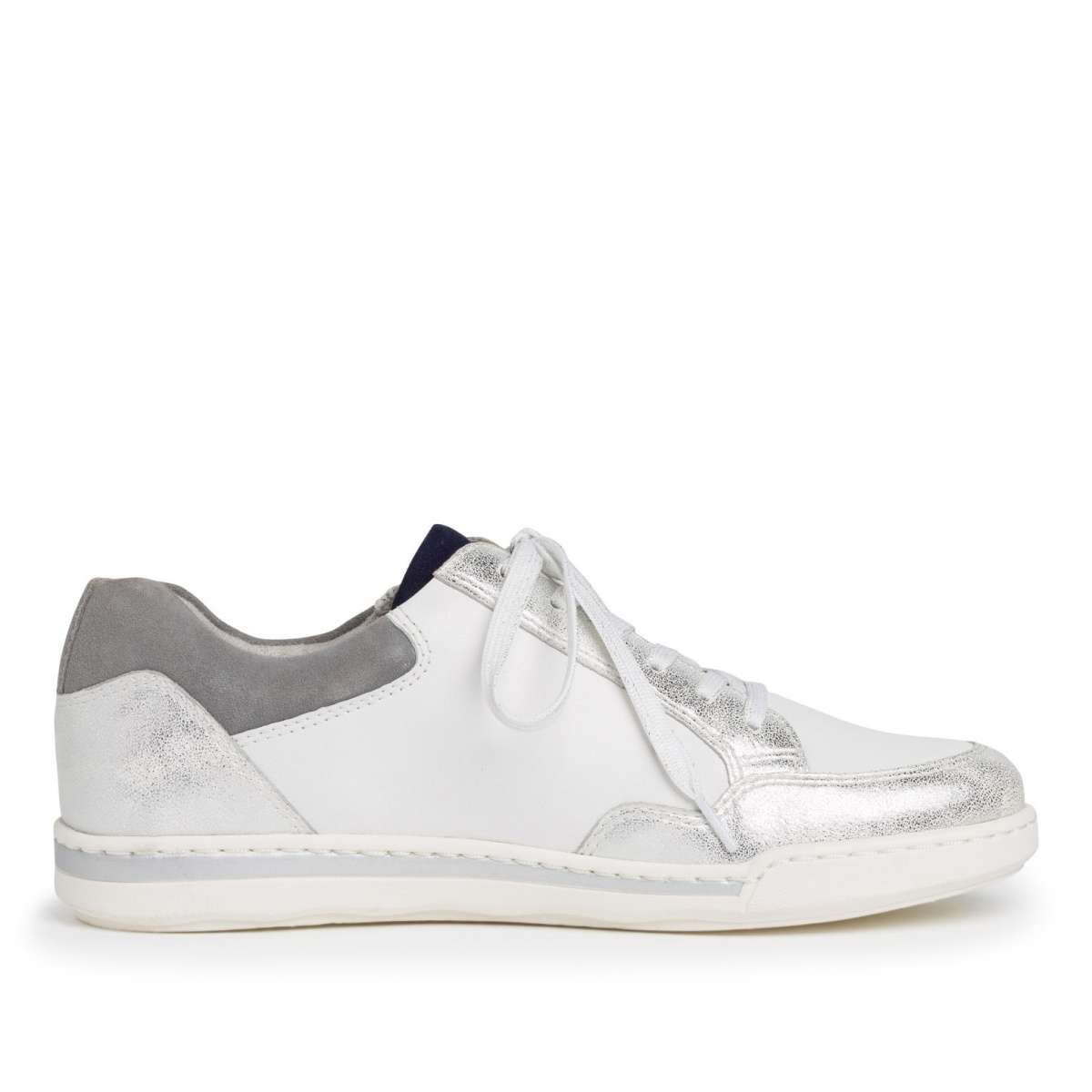 Tato dámská teniska oživí každý Váš sportovní outfit, ať už vyrazíte do práce, nebo na procházku či do města. Hladký svršek v barvené kombinaci šedé, bílé a stříbrné je kromě šněrování opatřen funkčním zipem pro snadné obutí. Pohodlí po celý den Vám zajistí speciální úprava stélky Touch it.