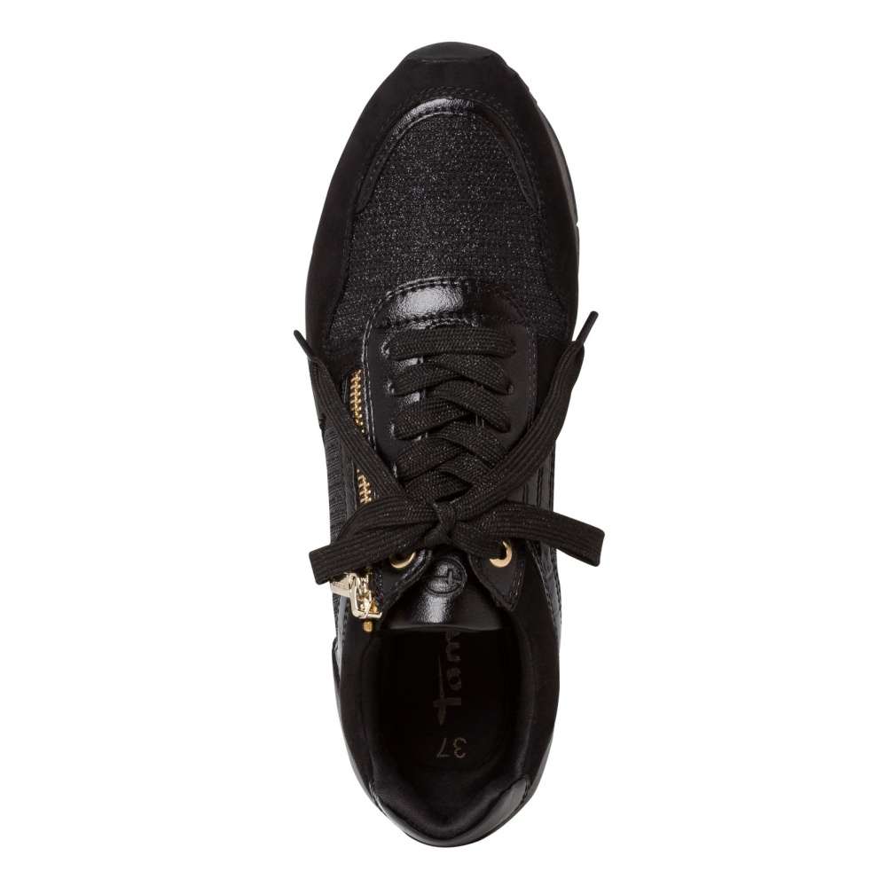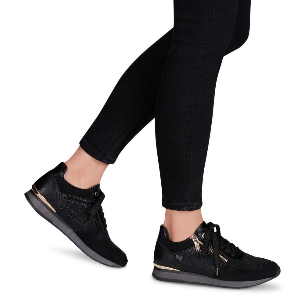 Dámské tenisky Tamaris vyrobeny z textilního materiálu s místy kožených prvků. Mají kulatou špičku a lehce zvýšenou podešev. Zdobným prvkem je zip v nártové části u šněrování a jednoduchý svršek snadno sladíte se svým outfitem ať už vyrazíte na procházku s rodinou, tak na pochůzky po městě či do práce.