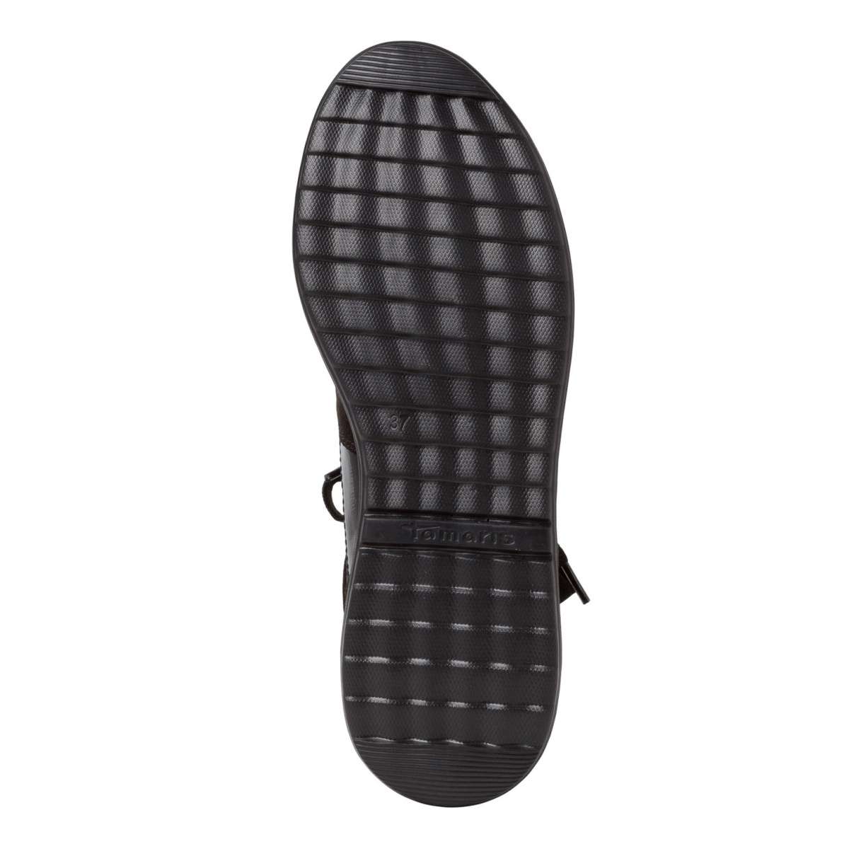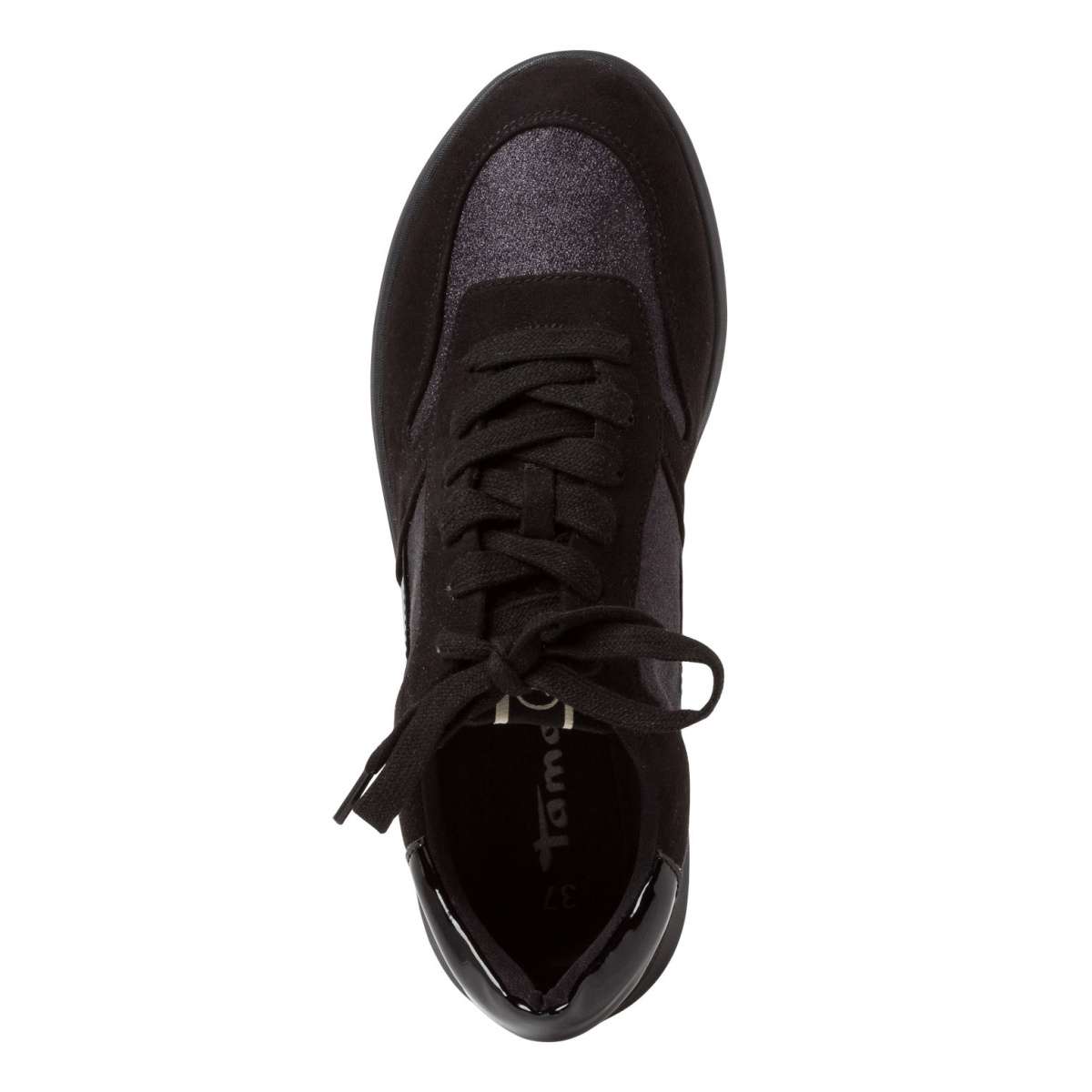Dámské tenisky značky Tamaris jsou zdobené třpytivým dílem v přední a boční části. Mají kulatou špičku a zajímavou kombinaci svrškových dílců. Šněrováním si pak obuv upravíte přímo k vlastní noze. Tento model unosíte k různým příležitostem ať už sportovním nebo pracovním.