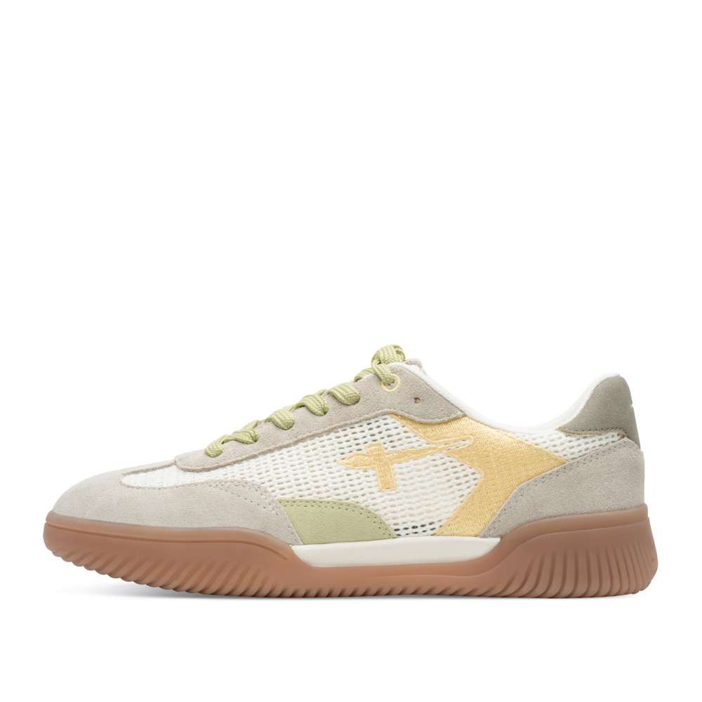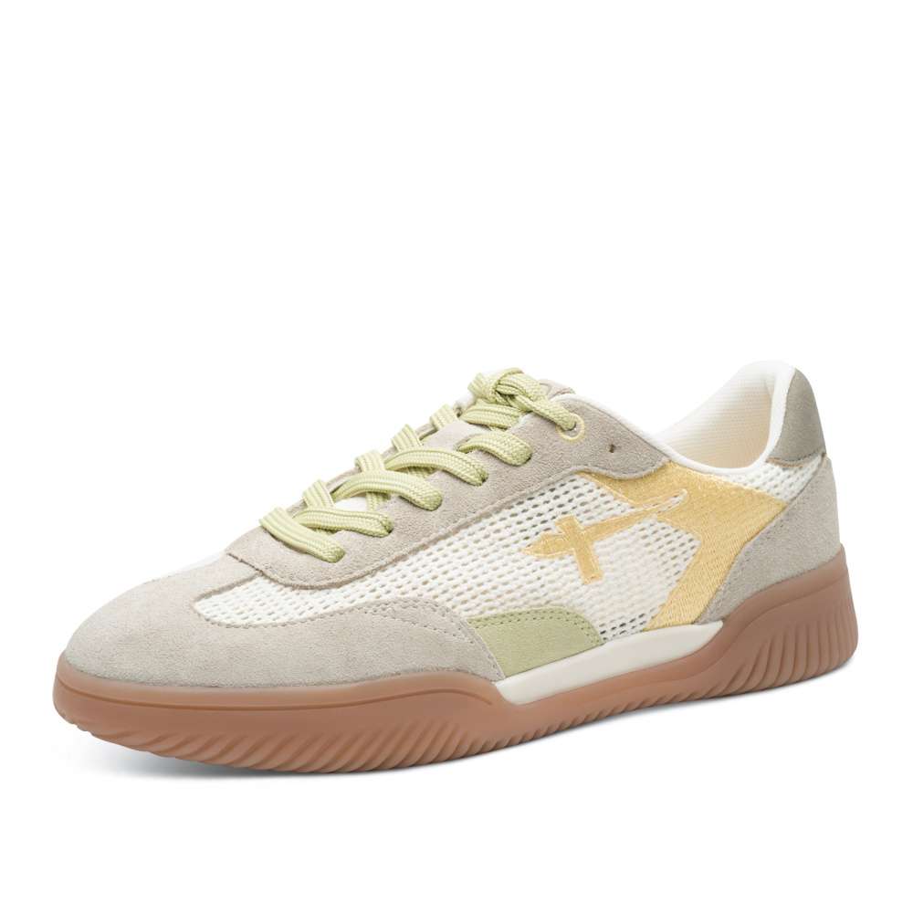 Představujeme tenisky Tamaris, které spojují originální design, komfort a praktické detaily v jednom modelu. Vizuálně atraktivní kombinace barev a materiálů okamžitě zaujme, zatímco decentní logo značky dodává obuvi punc originality. Vzdušný materiál po stranách obuvi zajišťuje optimální prodyšnost, takže se vaše nohy budou cítit svěže i při dlouhém nošení. Šněrování umožňuje snadné a přesné přizpůsobení tvaru nohy, což zajišťuje stabilitu a komfort při každém kroku. Komfortní vyjímatelná stélka přináší měkký, příjemný došlap a zároveň usnadňuje údržbu. Flexibilní podešev nejen zaujme svým moderním designem, ale především zajišťuje jistý krok po celý den a podporuje přirozený pohyb chodidla. Tyto tenisky nejsou jen obuví – jsou stylovým společníkem pro každý den, ať už míříte do práce, na procházku městem, nebo za volnočasovými aktivitami. Spojují módní vzhled, komfort a funkčnost, díky čemuž se budete cítit sebevědomě a pohodlně v každé situaci. Tamaris tak vytváří model, který je ideální pro moderní ženy hledající spojení stylu a praktičnosti v jednom.