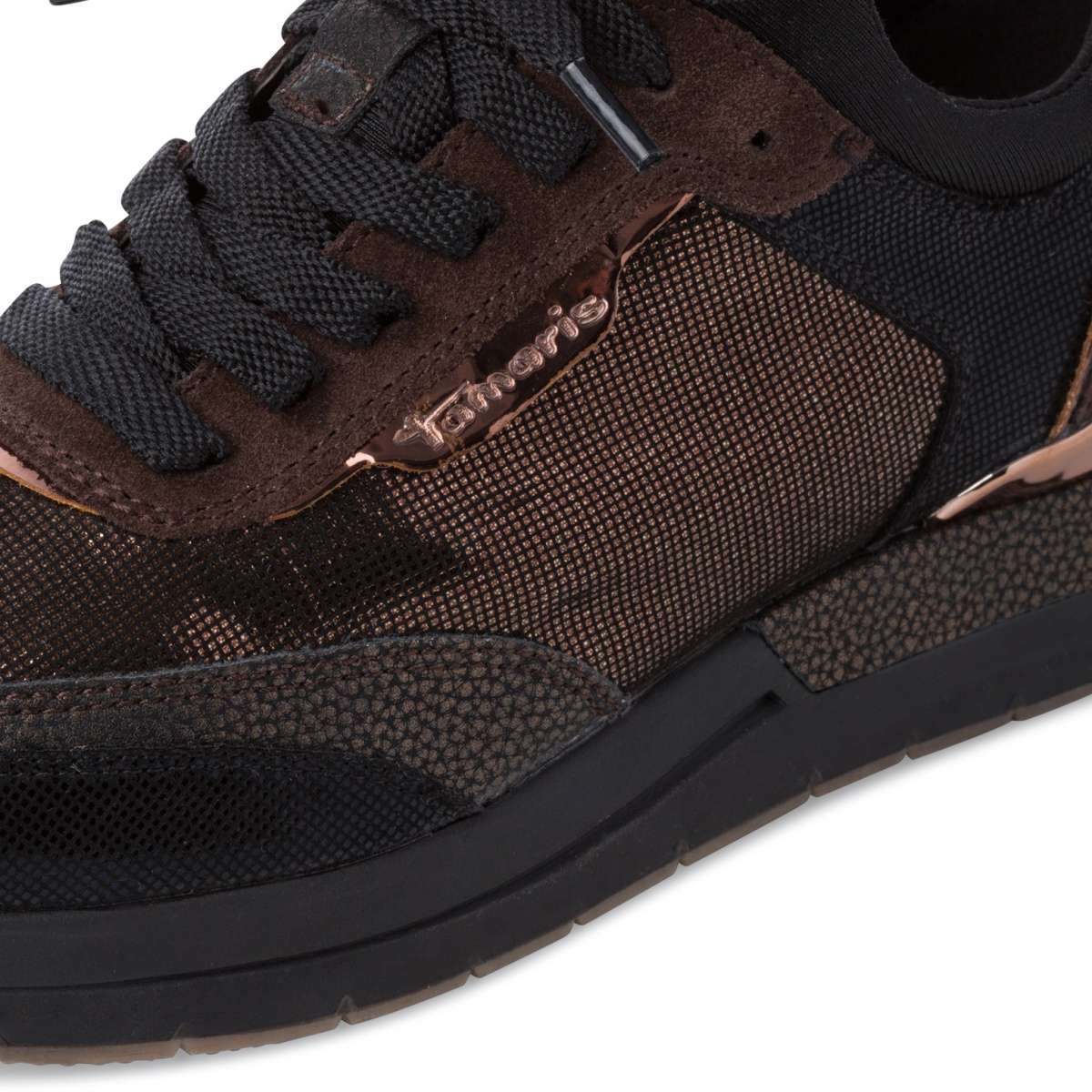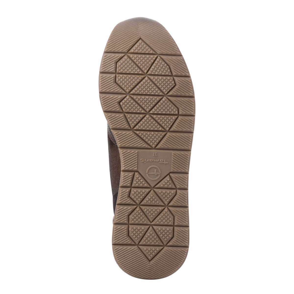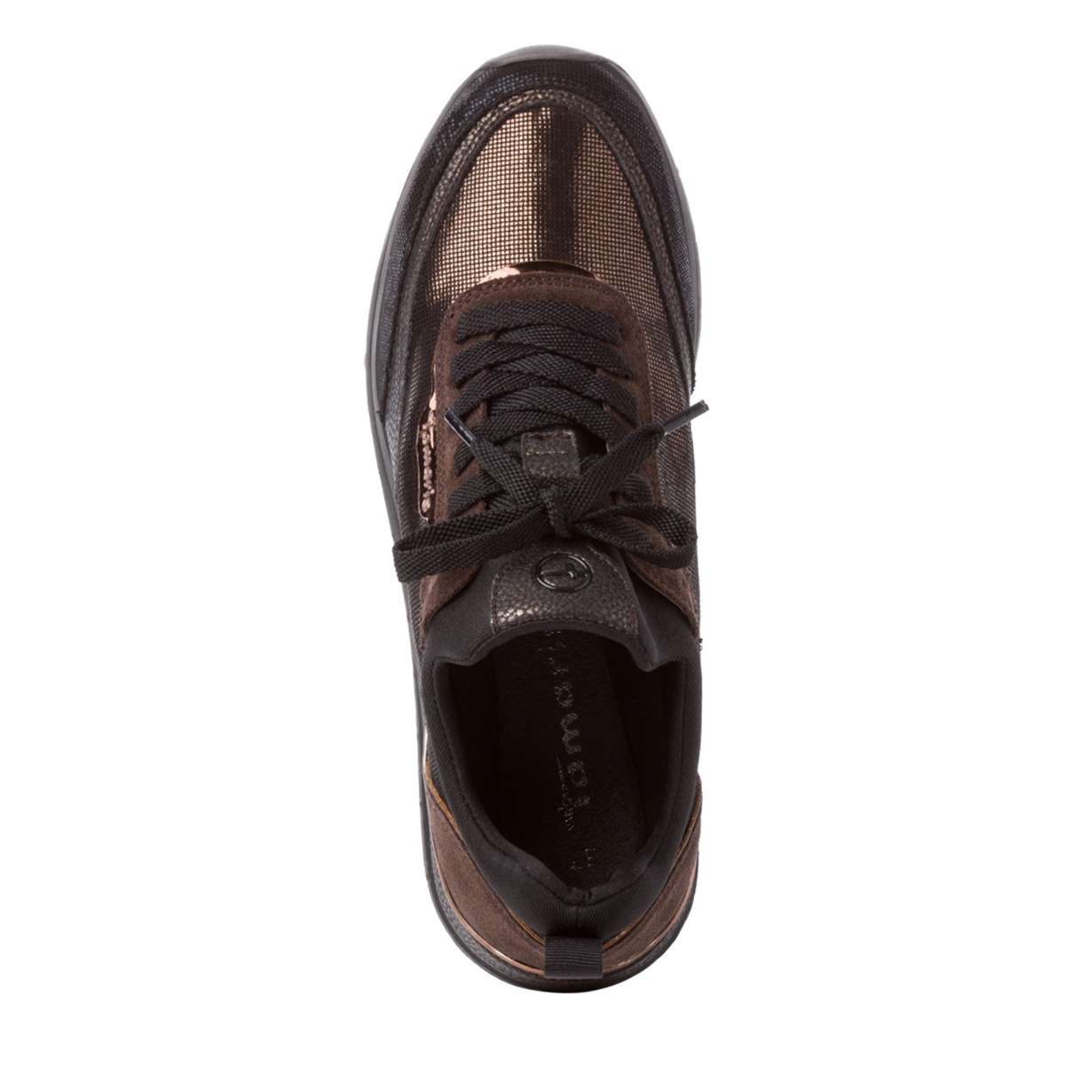 Originální vyvýšené tenisky od značky Tamaris jsou vyrobeny kombinací materiálů, kde dominujícím prvkem jsou metalické detaily. Tkaničkami na šněrování si je můžete utáhnout přesně podle Vaší potřeby. Měkká vyjímatelná stélka zaručí pohodlí a komfort i při celodenním nošení a kvalitní podešev Vám zajistí bezpečnou chůzi. Tato obuv bude vypadat naprosto senzačně například s džíny a koženou bundou.