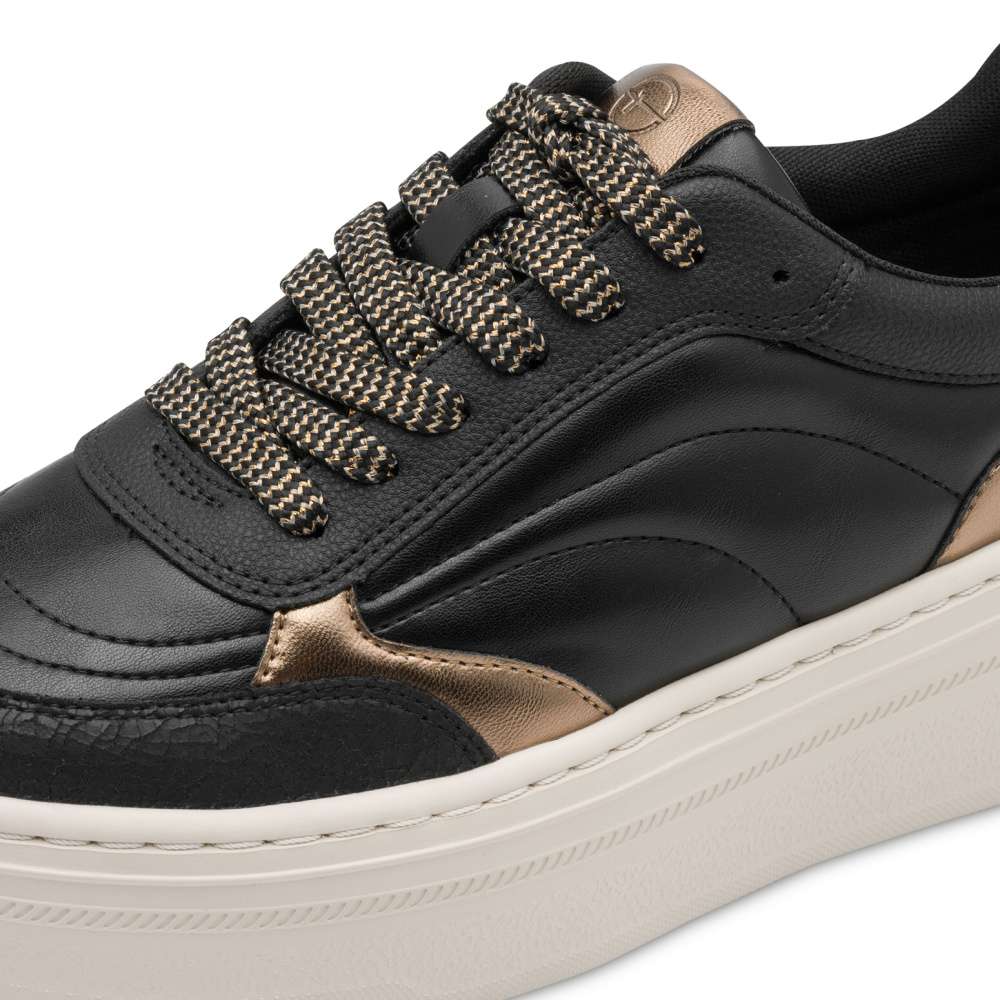 Pozvedněte svůj styl s těmito výraznými teniskami Tamaris, které zaujmou na první pohled harmonickou kombinací barev a materiálů s jemnými lesklými akcenty, které podtrhnou váš osobitý styl. Výrazná podešev zajišťuje nejen pohodlný krok, ale i moderní vzhled, který zaujme na první pohled. Stylové šněrování nejen vypadá poutavě, ale umožňuje individuální přizpůsobení vaší noze a měkká, vyjímatelná stélka se postará o komfortní krok po celý den. Tenisky, které spojují módní výraz a pohodlí v jednom.