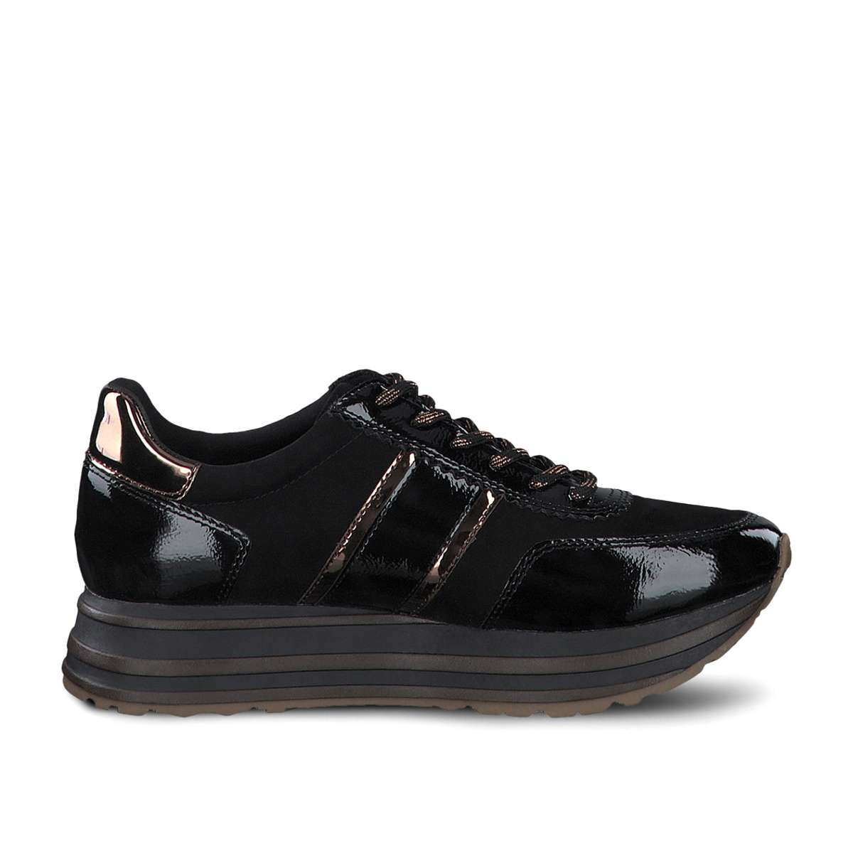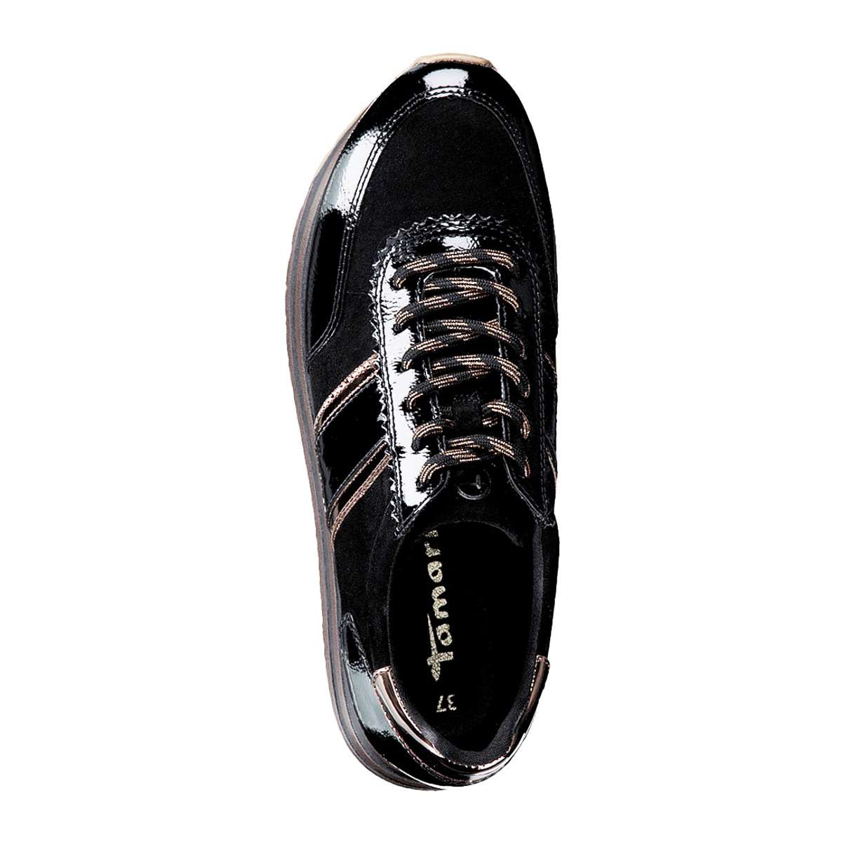 Lesklá, stylová obuv od značky Tamaris zaujme především svou kontrastní podešví a bronzovými detaily. Tkaničkami na šněrování si je můžete utáhnout přesně podle Vaší potřeby. Kvalitní vyjímatelná stélka zaručí pohodlí a komfort i při celodenním nošení. S tímto nápaditým modelem se nemusíte bát, že zůstanete bez povšimnutí.