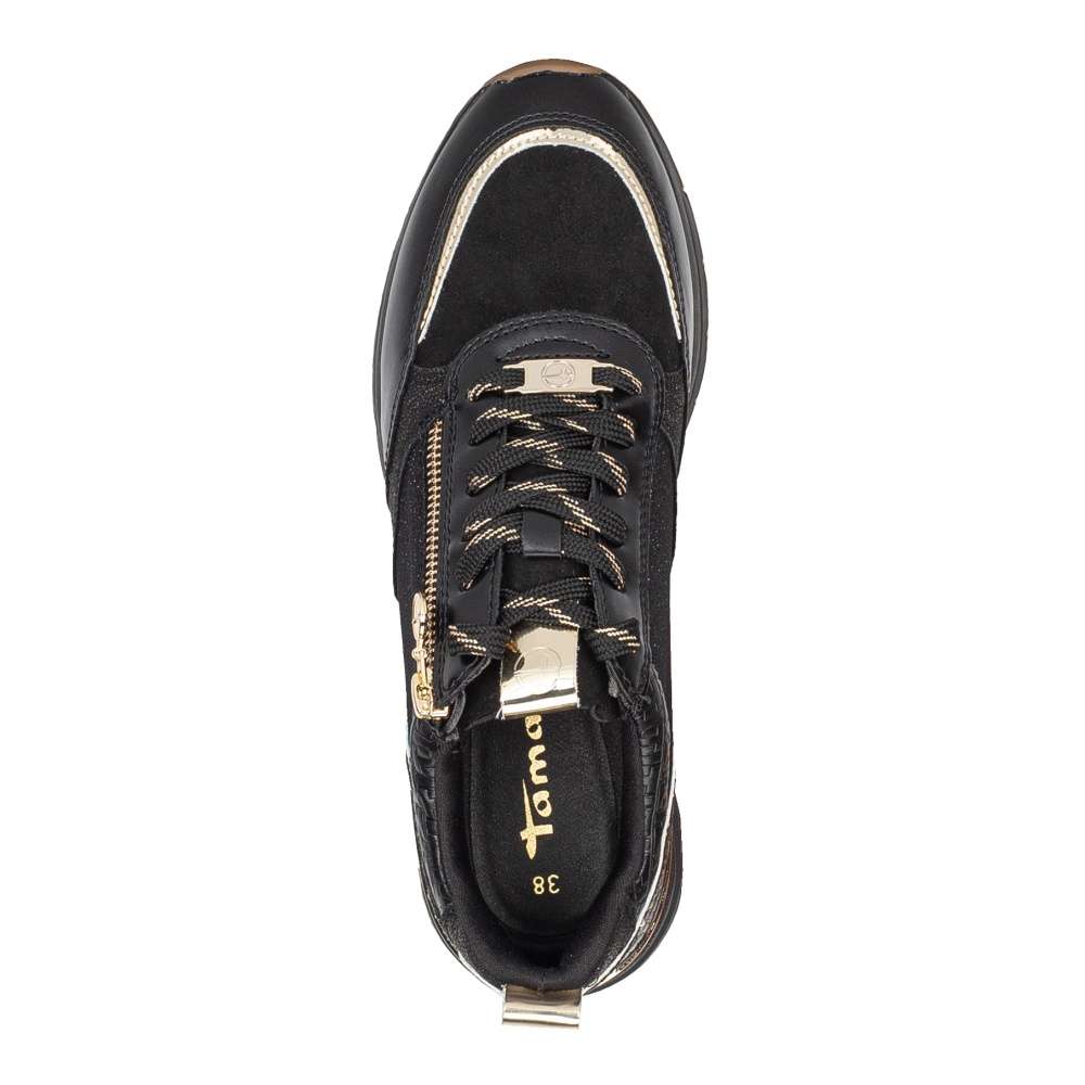 Tato dámská teniska od značky TAMARIS zaujme svým pestrým vzhledem už na první pohled. Svršek je kombinován různými materiály a ozdoben lesklým pruhem ve špičce a v patní části. Tkaničkami na šněrování si obuv upravíte přesně podle svého chodidla. Měkká stélka je vyjímatelná, tudíž si ji můžete kdykoliv vyměnit za novou. Neváhejte a dopřejte si tento skvělý módní kousek.