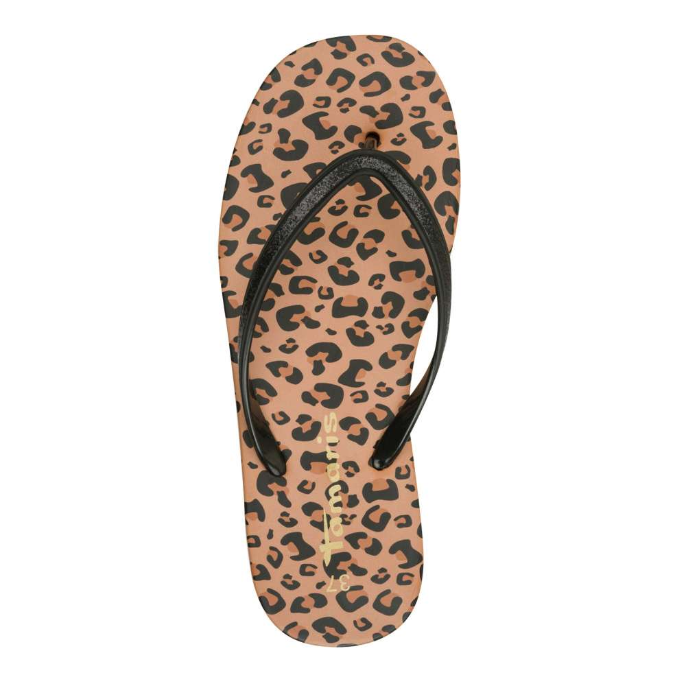 Objevte dokonalou kombinaci elegance a hravosti s touto žabkou značky Tamaris. Její černý třpytivý svršek přitahuje pohledy a dodává vašemu outfitu sofistikovaný lesk, zatímco vlnitá podešev s tygrovaným vzorem zaručuje jedinečný design a pohodlný krok. Ideální volba pro každou příležitost – ať už jdete na procházku městem, večerní posezení s přáteli, nebo jen chcete dodat svému stylu originální detail.