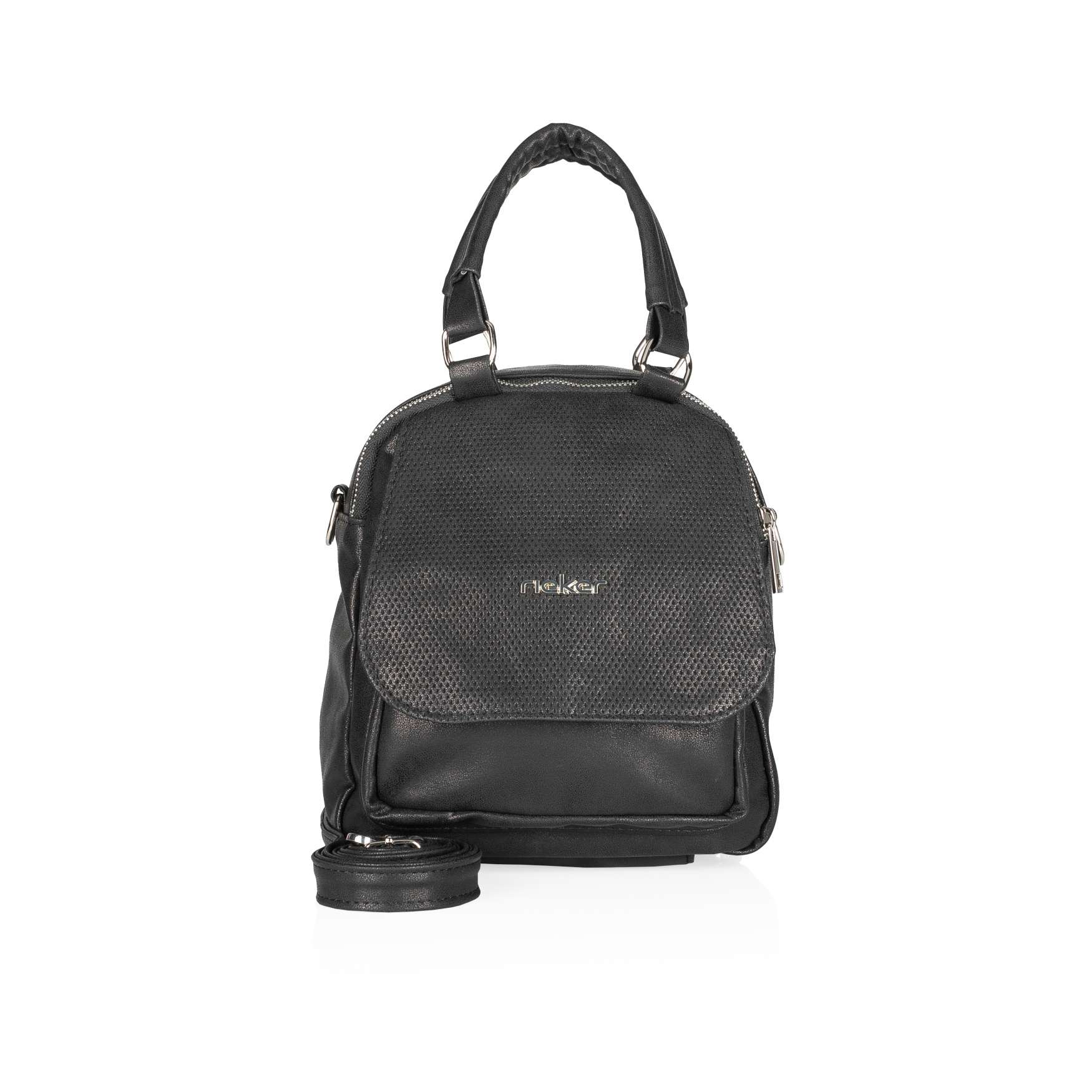 Tento malý batoh od značky Rieker představuje vše, co potřebujete mít ve svém šatníku. Hlavní prostor se uzavírá dvěma zipy a uvnitř naleznete pár menších kapsiček pro lepší organizaci všech drobností. Na přední straně batůžku najdeme magnetickou klopu, kterou zdobí logo Rieker. Klopa ukrývá další menší kapsičku na zip, která je ideální např. na klíče. Pokud Vás unaví nosit batoh na zádech, můžete využít odepínatelný popruh a vzít si ji jako crossbody nebo dokonce jako kabelku do ruky. Díky multifunkčnímu využití je perfektní pro všechny příležitosti.