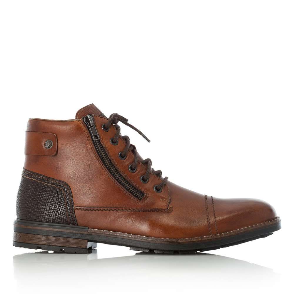 Pánské kotníky hnědé barvy značky RIEKER, které se stanou Vaším oblíbeným každodenním doplňkem. Svršek této boty je ušit z kůže a to Vám zajistí perfektní přizpůsobení se Vaší noze. Z vnitřní a vnější strany je funkční zip, který Vám pomůže k lepšímu prozutí a šněrováním si doladíte obuv přímo na nohu. K dispozici je hřejivá podšívka a stélka, která bude při každém Vašem kroku příjemná. Výška podešve cca 3,1 cm a její hrubší vzor Vám dodá komfort, který s Vámi bude celý den.