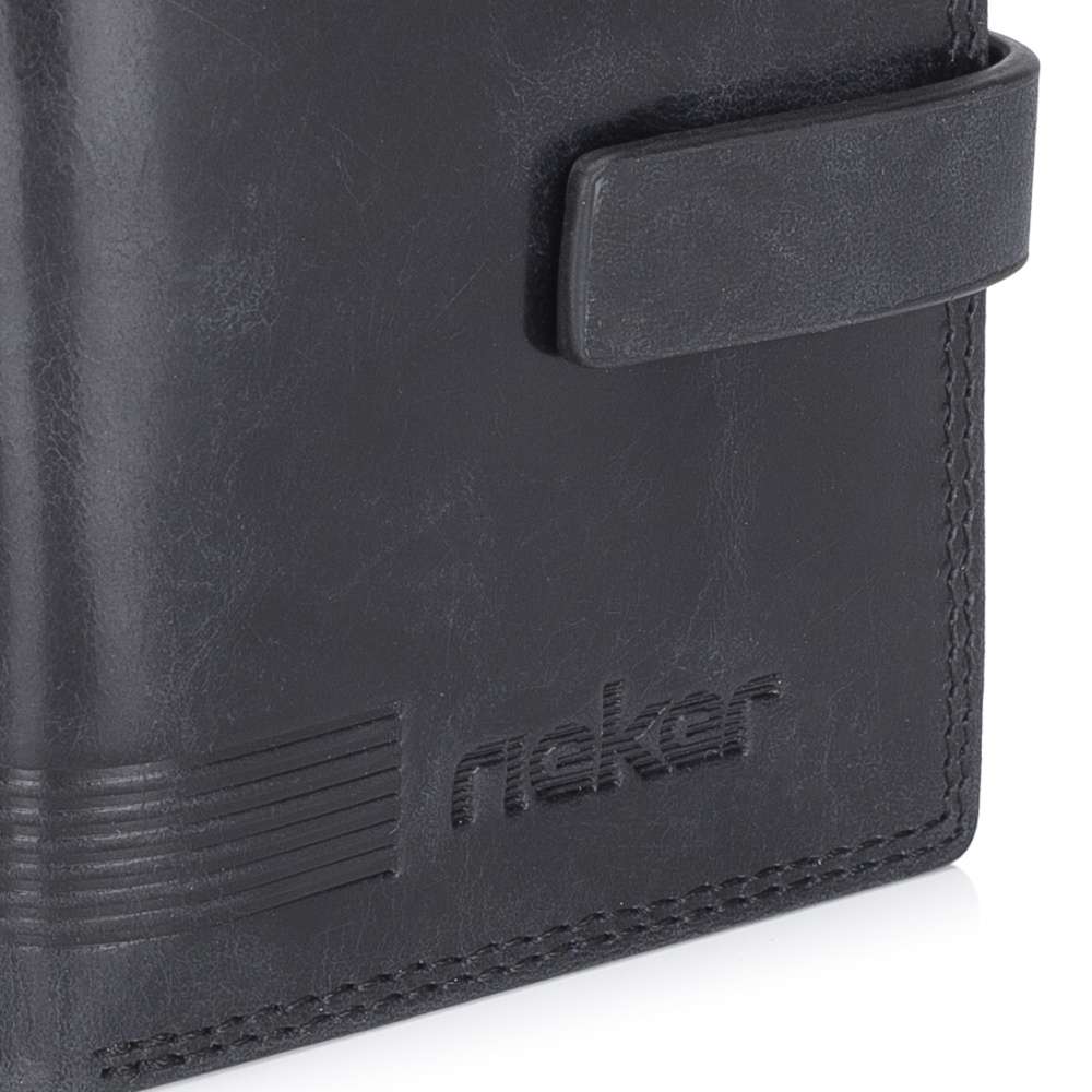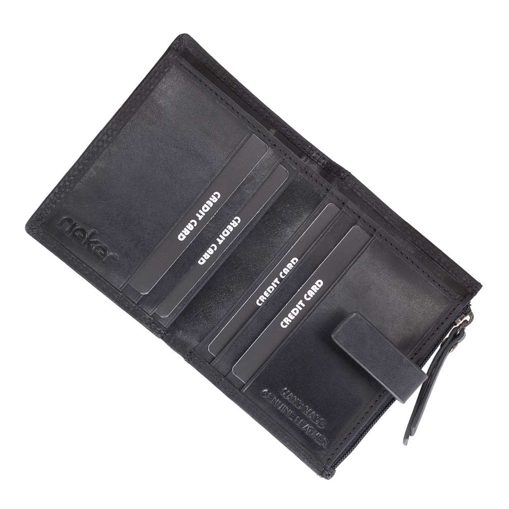 Kvalitní kožená peněženka je vizitkou každého muže a tento model značky Rieker je dokonalou volbou pro každého z vás. Hladké provedení černého svršku doplňuje jemně vystouplý nápis značky doplněný decentními liniemi, které podtrhují vkusný charakter. Pásek s drukem uzavírá vnitřní prostor s promyšlenou organizací, naleznete zde přihrádky na doklady, karty a oddělenou přihrádku na papírové peníze. Samostatná kapsa se zipem je ideální na mince. Tato peněženka je ideálním doplňkem pro každodenní použití a spolehlivým společníkem každého muže.