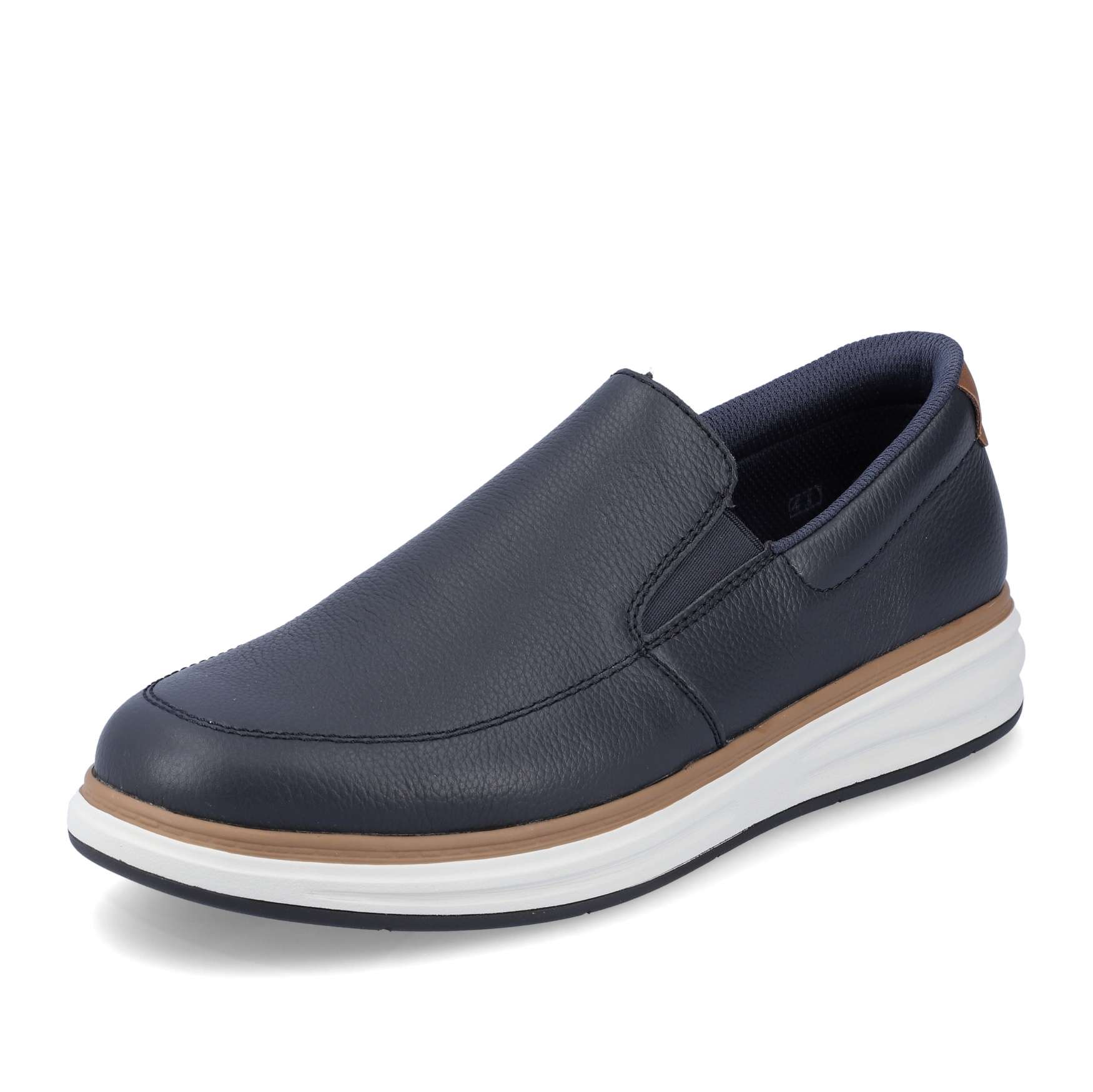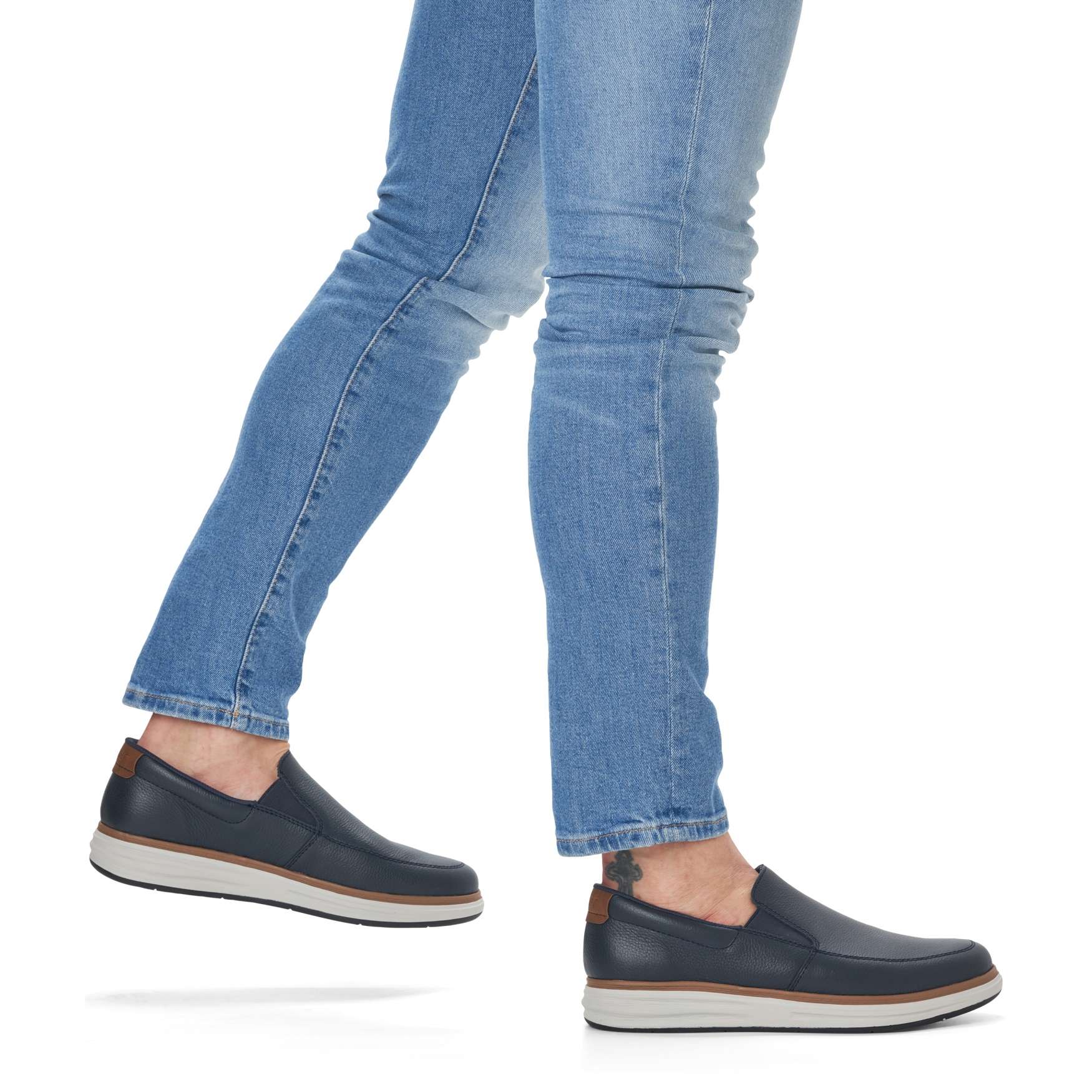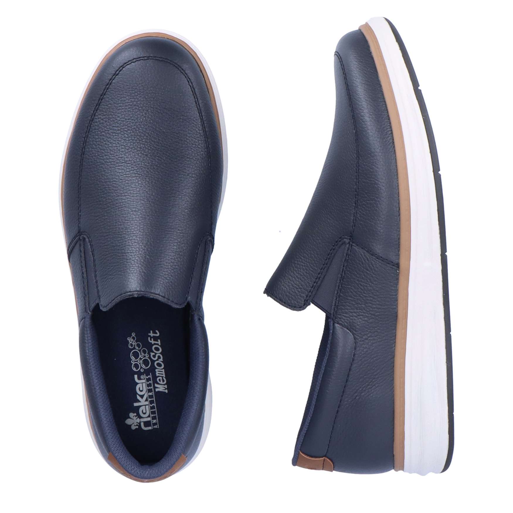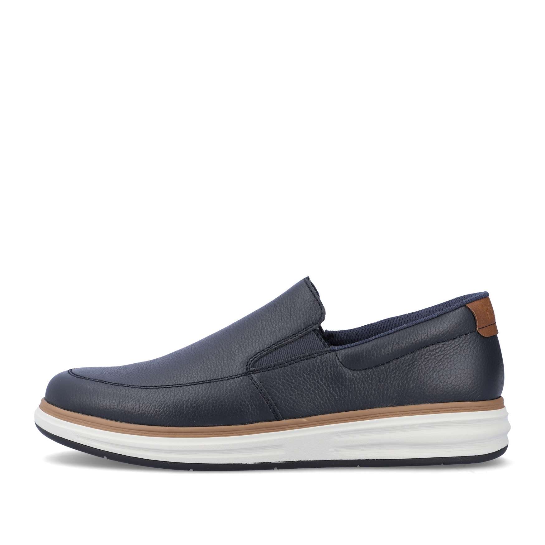 Pánské mokasíny značky RIEKER Vás okouzlí na první pohled svým jednoduchým a přitom moderním vzhledem. Hladký kožený svršek je zdoben lemem podél podešve a jsou zde také všité gumičky pro pohodlné obutí. Stélka vybavená technologií MemoSoft a flexibilní podešev zajistí pohodlí při chůzi. Tyto boty využijete jak na procházkách, tak na cestě do práce.