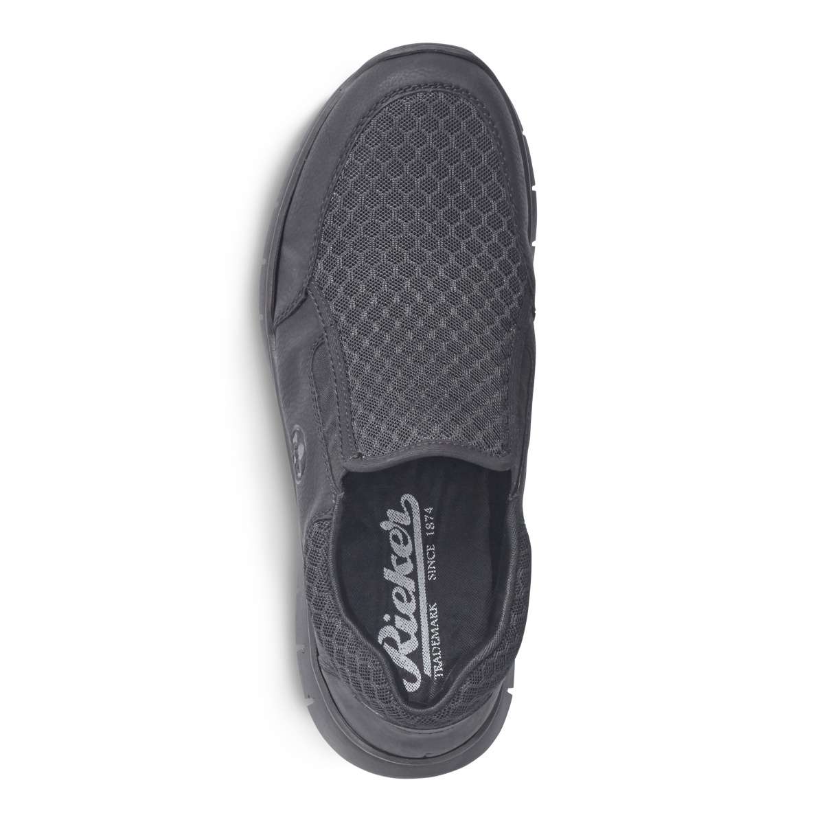 Polobotky v černé barvě jsou zde přímo pro Vás. Unikátní jsou díky síťovaného vzhledu svršku v kombinaci s díly jemně semišového vzhledu. Po stranách jsou vsazeny pružné gumičky pro snadné obutí. Tento model je vhodný jak k pracovním povinnostem, tak k volnočasovým procházkám.