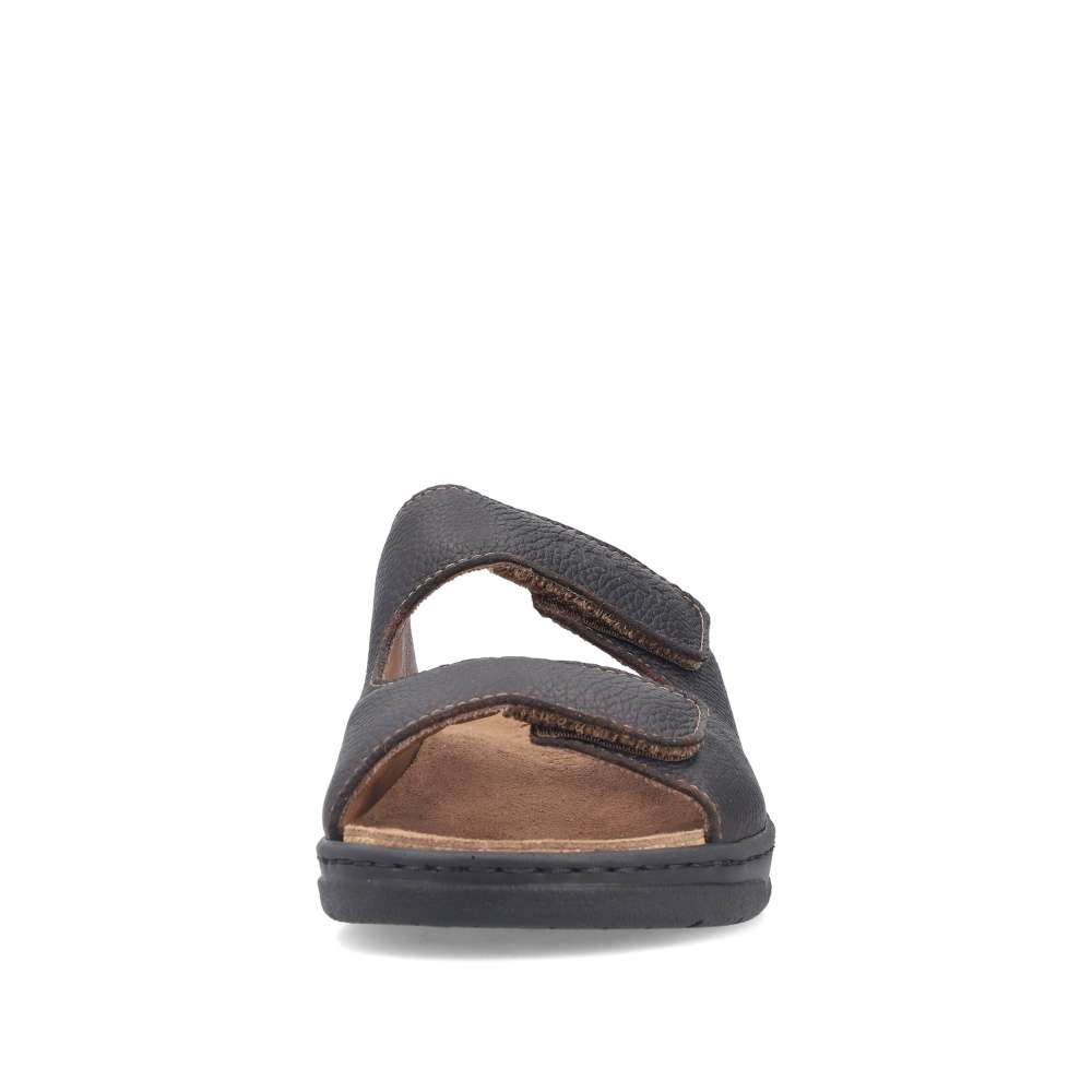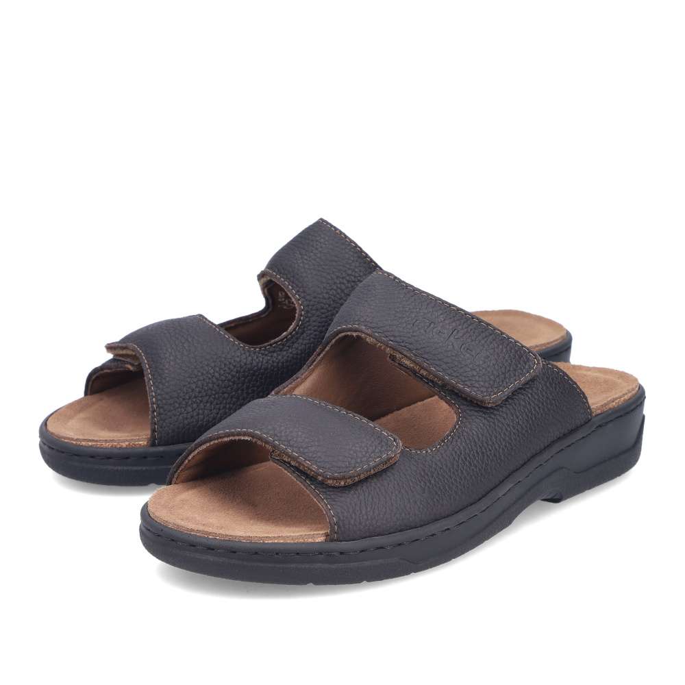 Nazouváky RIEKER v koženém provedení představují ideální volbu obutí do teplých dnů, kdy oceníte jejich poskytovaný komfort a kvalitu zpracování pro tuto značku typickou. Hnědý svršek působí univerzálně, takže se tyto boty snadno sladí s jakýmkoli letním outfitem. Dva nastavitelné pásky se suchým zipem umožňují dokonalé přizpůsobení obuvi ve tvaru nohy, takže se budete cítit pohodlně po celý den. Na jednom z pásků se decentně vyjímá logo značky, které dodává botám punc originality. Vyjímatelná stélka zajišťuje vysoký komfort při každém kroku a umožňuje snadnou údržbu či případnou výměnu. Díky širšímu střihu nazouváky vytvoří dostatečný prostor chodidlu. Podešev s tlumící technologií efektivně absorbuje nárazy při chůzi, čímž šetří vaše klouby a zvyšuje celkový komfort při nošení. Tyto kožené nazouváky jsou ideální pro každodenní nošení doma, ve městě i na dovolené.