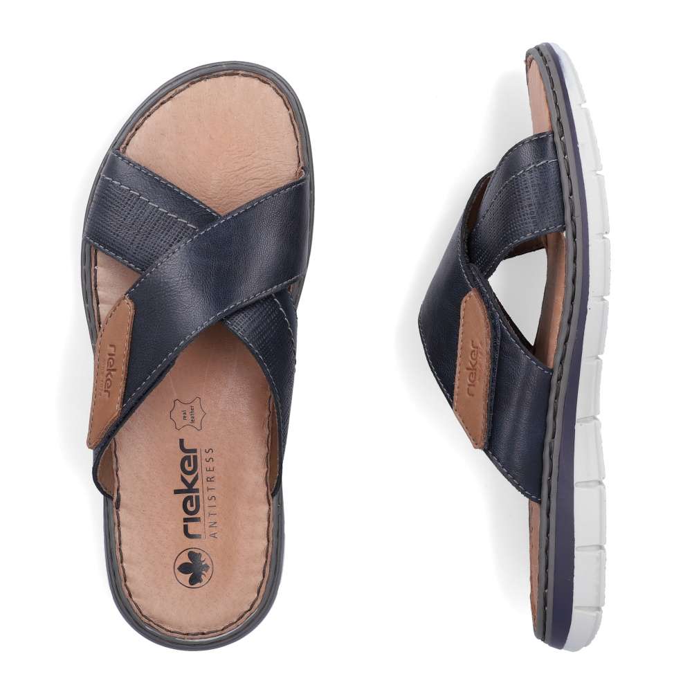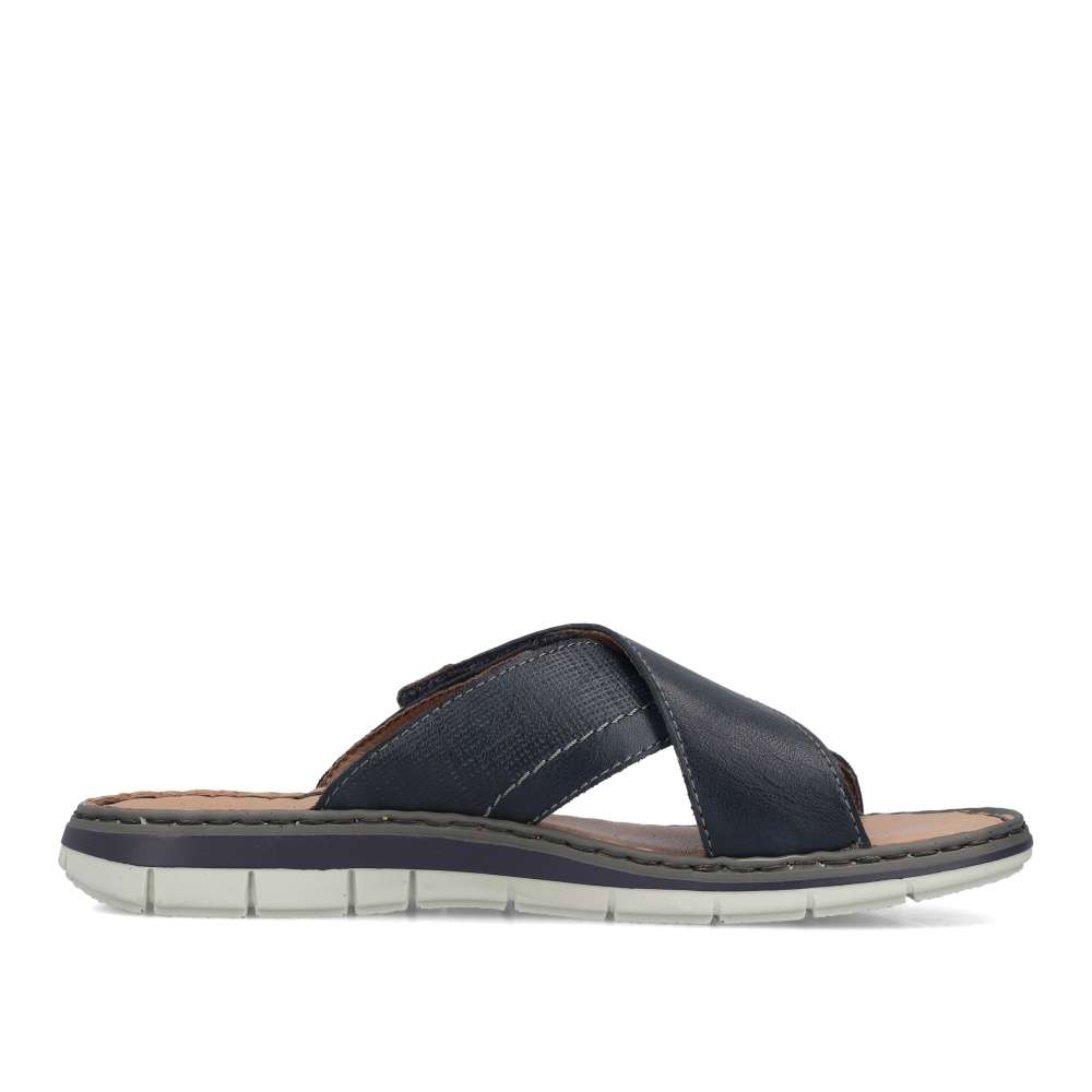 Tyto kožené pánské nazouváky RIEKER představují spojení stylového designu a maximálního komfortu, díky čemuž se stanou vaším oblíbeným společníkem během letních dnů. Svršek je tvořen efektně překříženými pásky v různých strukturách, což dodává obuvi jedinečný vizuální charakter. Na jednom z pásků se nachází decentní nášivka s logem značky RIEKER, která podtrhuje kvalitu a originalitu modelu. Pro ještě větší komfort při nošení je pásek opatřen praktickým suchým zipem, díky kterému si můžete obuv jednoduše přizpůsobit podle tvaru svého chodidla. Vnitřek doplňuje kožená stélka, která poskytuje pocit pohodlí a opory během celého dne. Flexibilní podešev, typická pro značku RIEKER, je vybavena technologií tlumení nárazů, čímž usnadňuje každý krok a přispívá k přirozené chůzi bez únavy. Tyto nazouváky jsou ideální volbou pro každodenní nošení, skvěle se hodí pro volnočasové nošení, procházky po městě či dovolené.