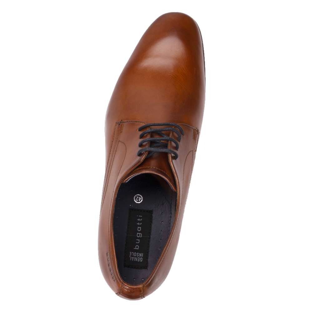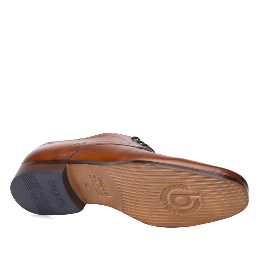 Pánské klasické polobotky značky BUGATTI, které jsou ušity z pravé kůže. V hnědé barvě jsou zdobené jednoduchostí svršku, elegantním šitím a vyraženým logem u paty. Mají užší kulatou špičku a hladký povrch. Šněrováním si je upravíte dle svých požadavků. Tento model užijete ke všem společenským i pracovním povinnostem.