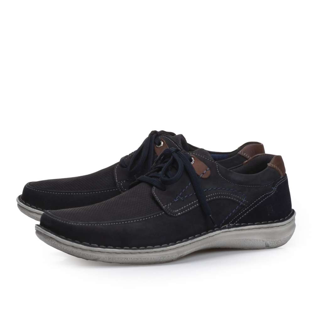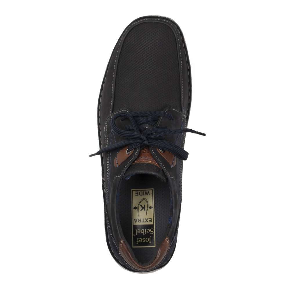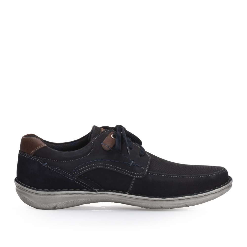 Tato pánská polobotka značky JOSEF SEIBEL bude tou správnou pro ty z Vás, kteří máte rádi pohodlí po celý den. Tmavě modrý svršek vyrobený z pravé kůže je ozdoben hnědými prvky v oblasti paty a nártu a kontrastním prošíváním, které na botě vytváří zajímavé linie. Šněrováním si obuv snadno nazujete a přizpůsobíte dle svých požadavků. Měkká vyjímatelná stélka je extra široká, tedy poskytne dostatek prostoru pro Vaše chodidlo. Tento model snadno sladíte snad se všemi outfity jak do práce, tak na procházky městem.