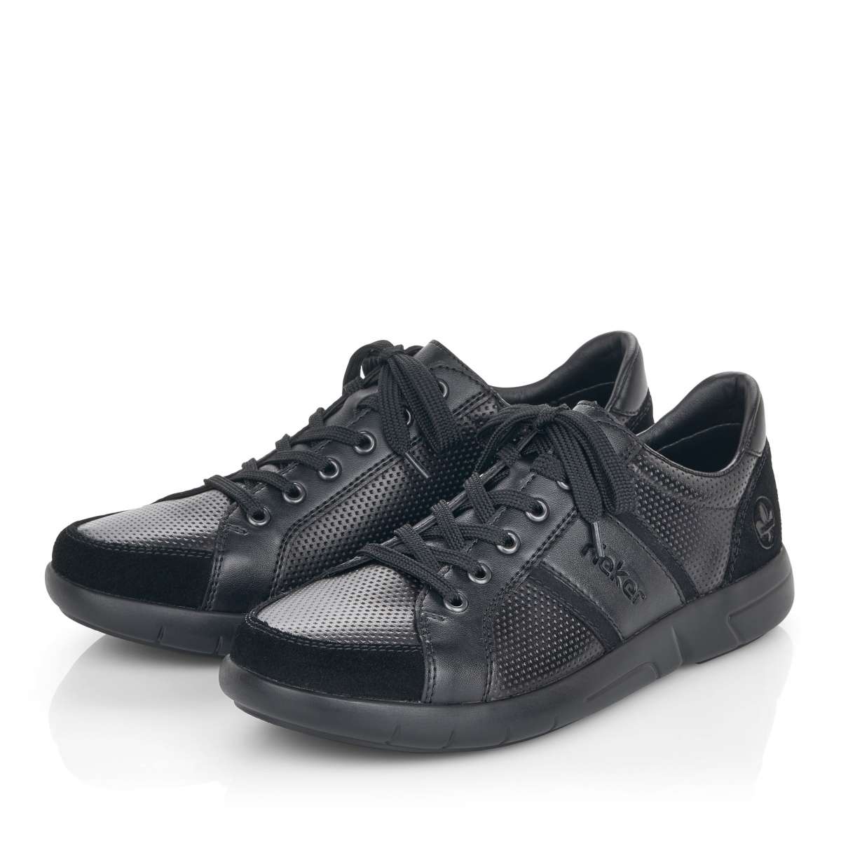 Pánské šněrovací tenisky od německé značky RIEKER v tmavé barvě dodají Vašemu šatníku to pravé. Boty jsou vybaveny tkaničkami, díky kterým si obuv utáhnete přesně podle Vašich představ. Podešev je tvořena hrubším vzorkem a to Vám zajistí jistotu každého kroku. Jistě také oceníte měkkou textilní stélku, která se postará a pohodlnou chůzi během celého dne. Vkusný model, jenž můžete obout ke každému outfitu.