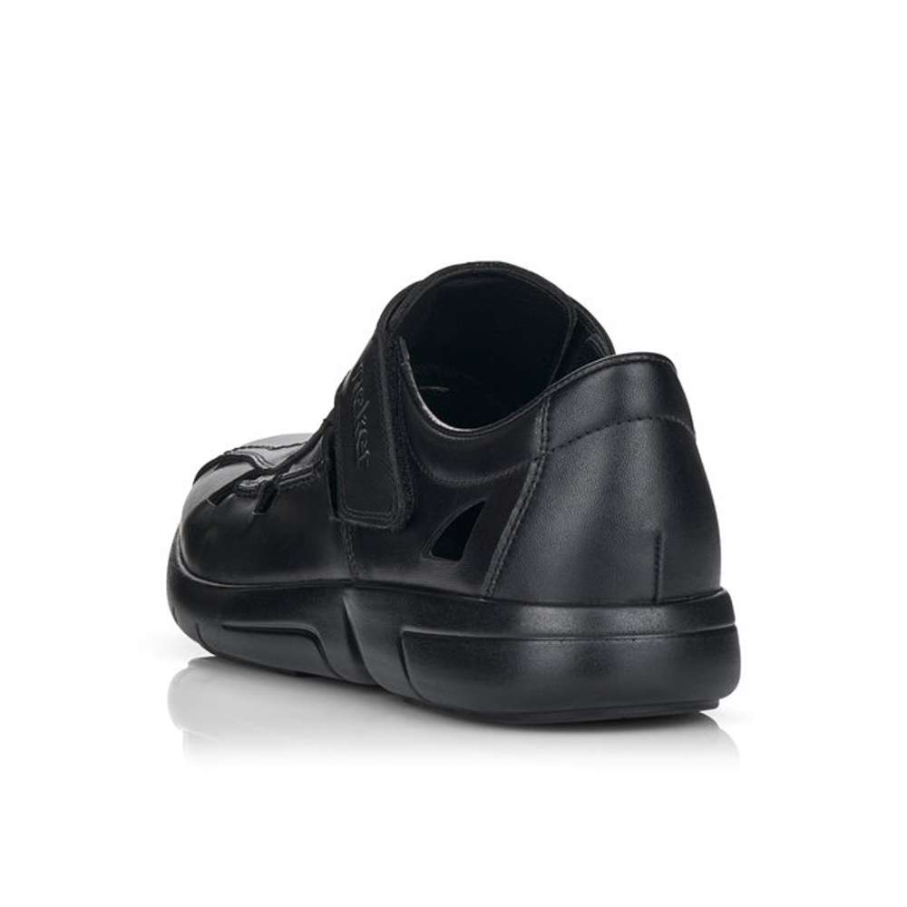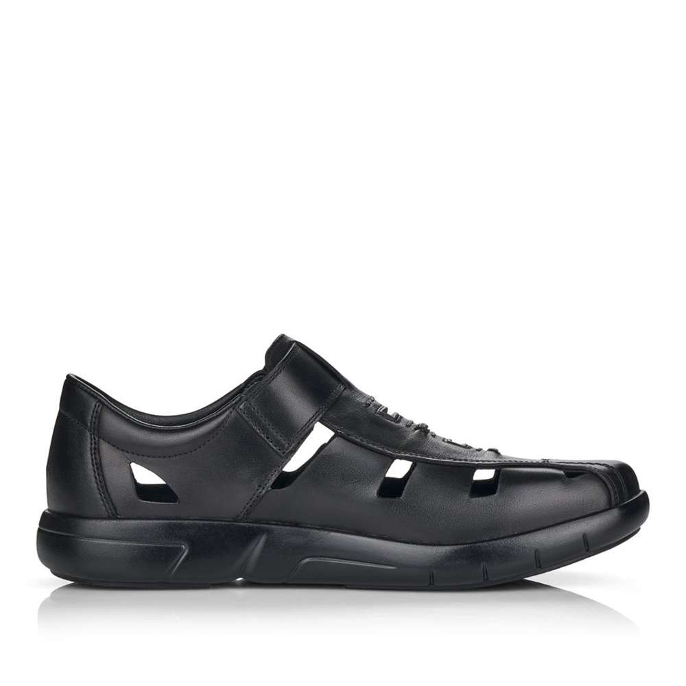 Pánské polobotky z hladké kůže v černé barvě jsou více perforované pro Vaše pohodlí i v teplých letních dnech. Podešev vysoká cca 3,3 cm je doplněna o speciální technologii Antistress, která pohlcuje nárazy a zajistí tak pohodlí na každém kroku. Měkká stélka vyrobena z pravé kůže je určena pro širší chodidlo. Pro snadné nazouvání slouží na vnější straně pásek na suchý zip, díky kterému si botu přizpůsobíte Vašemu chodidlu. Tento model bude dobře vypadat jak k plátěným kalhotám, tak ke kraťasům.