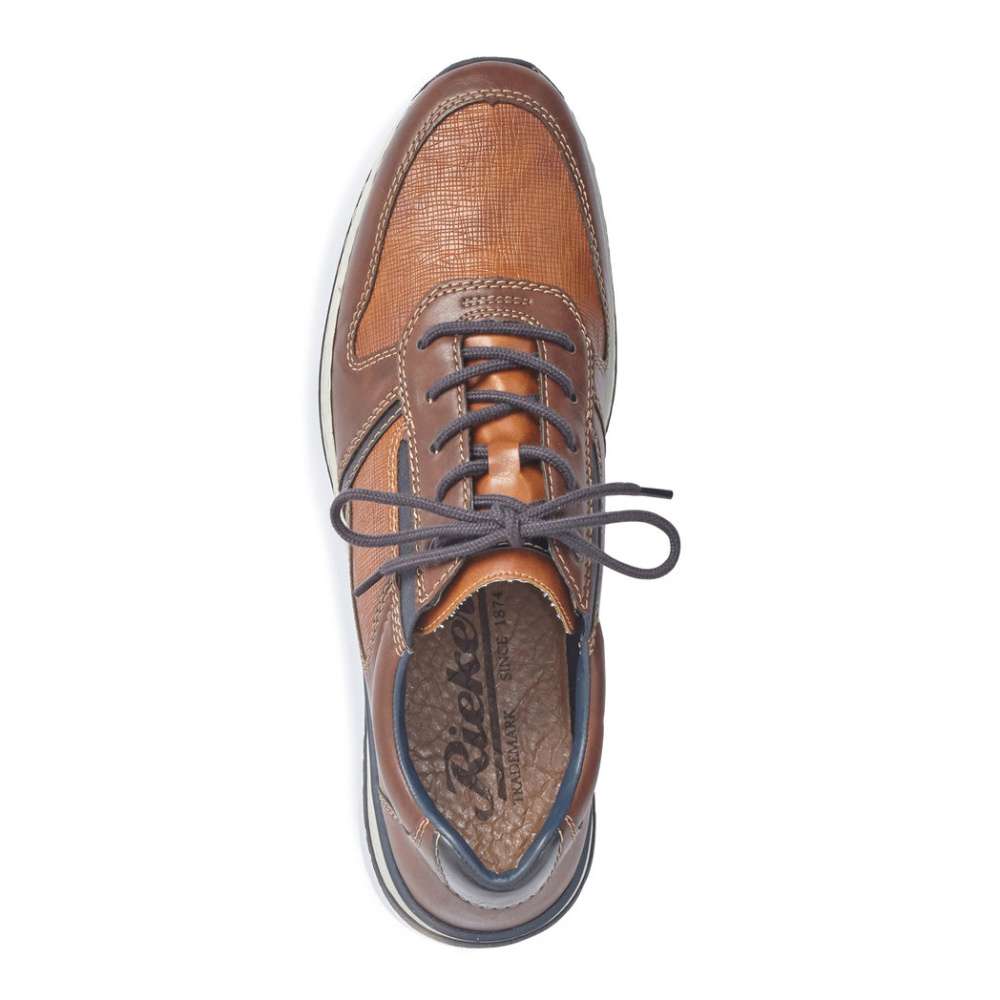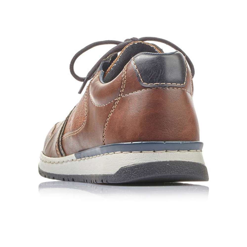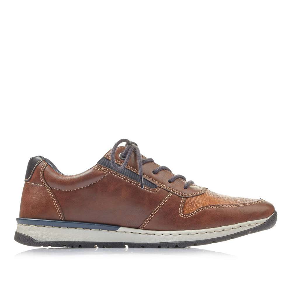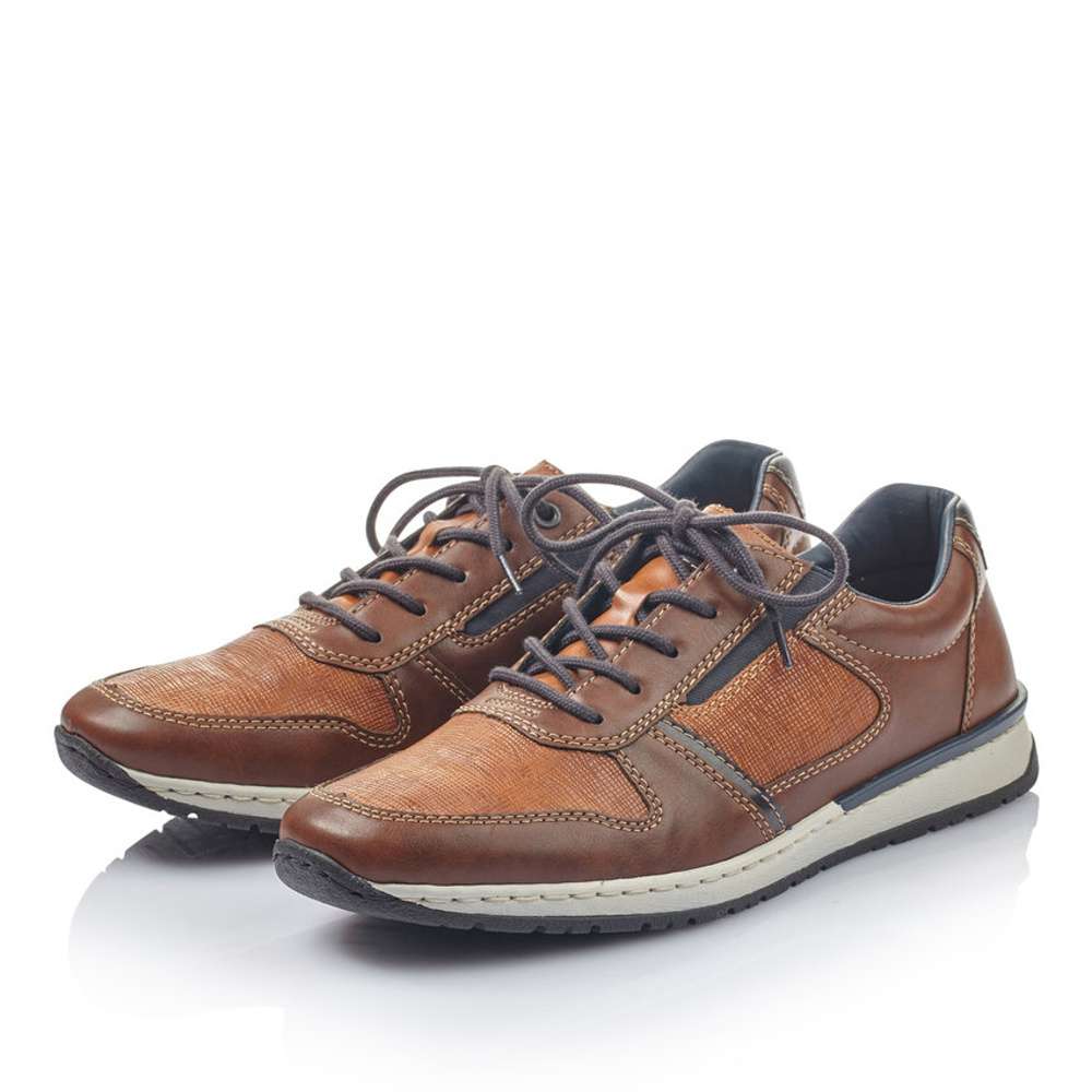 Sportovní polobotky značky RIEKER, jsou zde přímo pro Vás. Unikátní jsou díky vrývanému vzhledu svršku v kombinaci s více odstíny hnědé a tmavě modré. Po stranách jsou vsazeny pružné gumičky a zároveň šněrování Vám poslouží pro snadné obutí. Tento model je vhodný jak k pracovním povinnostem, tak k volnočasovým procházkám.
