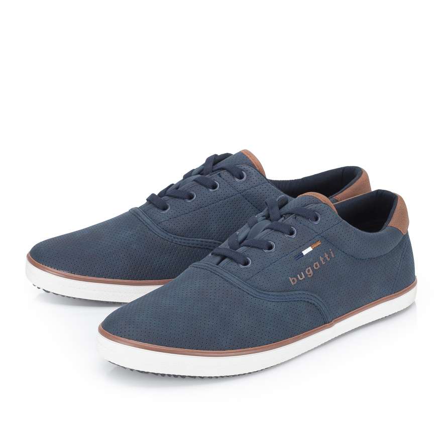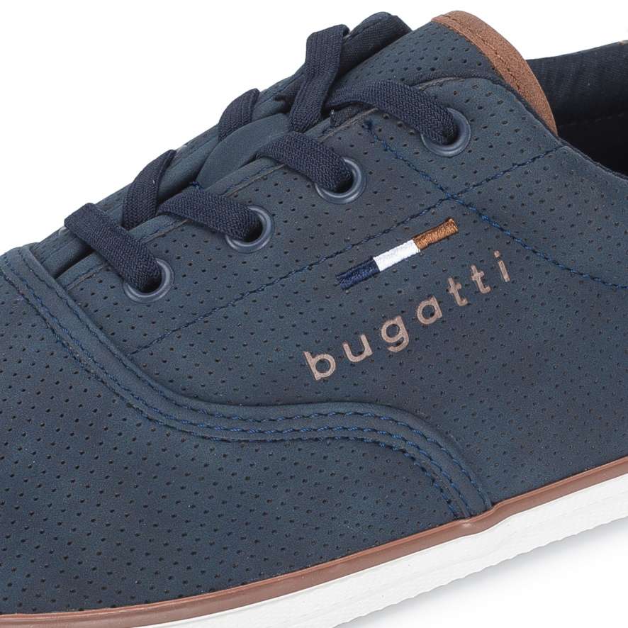 Pánské tenisky značky Bugatti jsou stylovým a zároveň praktickým doplňkem do vašeho botníku. Tmavě modrý svršek zdobí minimalistický vzor a logo značky umístěné na vnější straně dodává teniskám prémiový akcent. Díky klasickému šněrování si obuv snadno přizpůsobíte tvaru nohy, což zajišťuje pohodlí po celý den. Univerzální design umožňuje snadné kombinování s různými outfity – ať už vyrážíte do práce, do města nebo na volnočasové procházky.