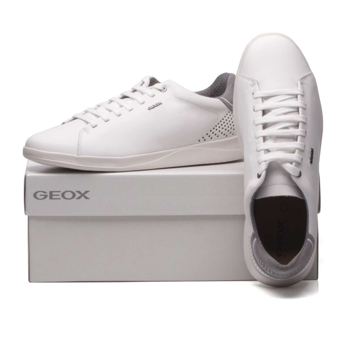 Velice výjimečné pánské tenisky od značky Geox jsou vyrobeny z přírodní usně a mají bílou barvu s šedým detailem. Zajímavý prvek v podobě ozdobné perforace v patní části, která neprochází skrz celou tloušťku materiálu, dělá obuv opravdu stylovou. Tkaničky na šněrování slouží k zajištění bot proti vyzutí, proto díky utažení Vám krásně padnou přímo na Vaše chodidlo. Podešev Vám zaručí maximální pohodlí, prodyšnost a voděodolnost. S těmito cool teniskami rozhodně neuděláš krok špatným směrem.