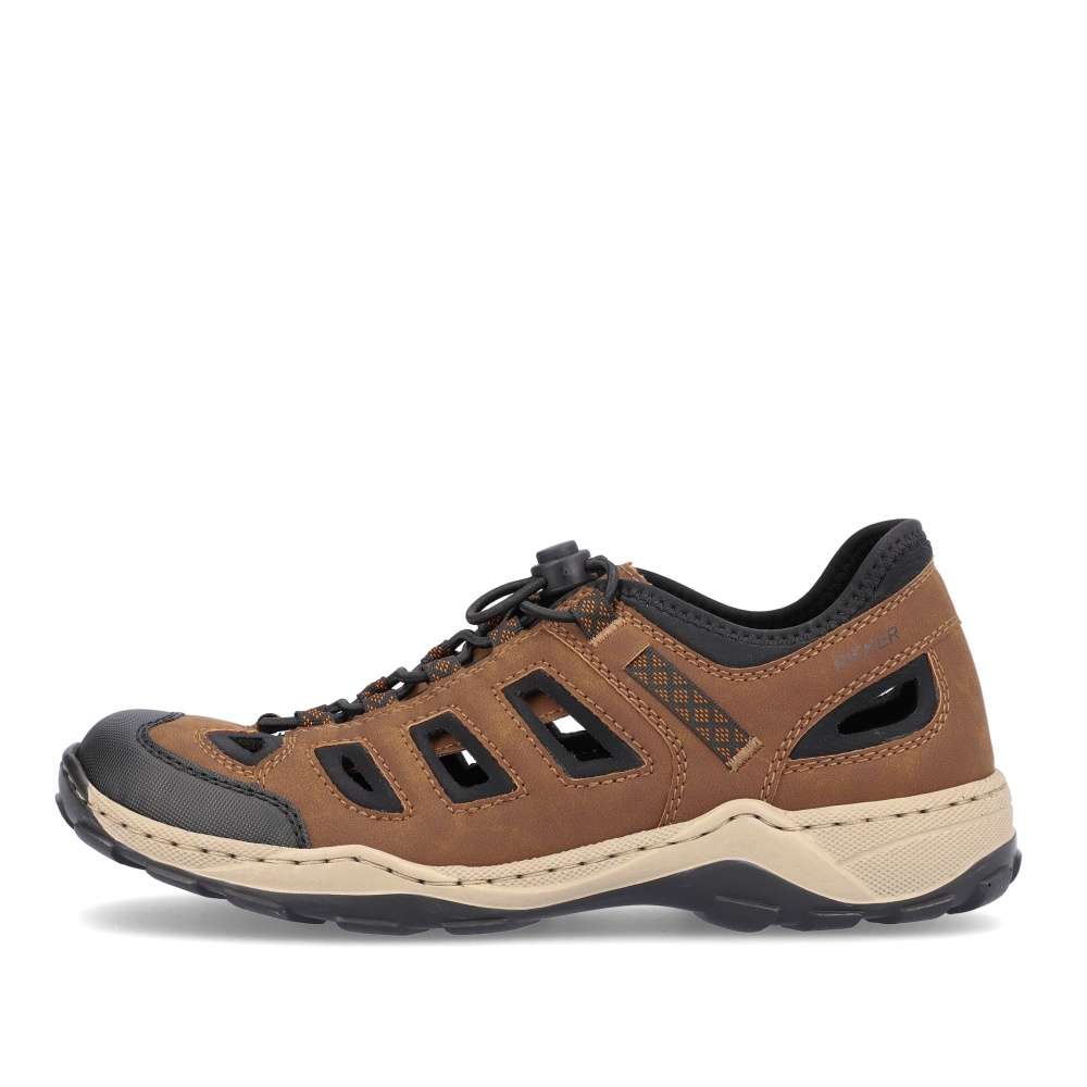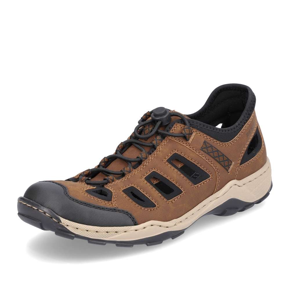 Pánské boty Rieker zaujmou svým vzhledem a praktickým provedením perforace, kterou oceníte při vyšších teplotách. Šněrování gumičkou Vám usnadní obouvání a upevní nohu přesně dle Vašich požadavků. Díky flexibilní podrážce budete mít pocit pohodlí i při delší chůzi. Ideální obuv pro procházku lesem nebo k letnímu outfitu do práce.