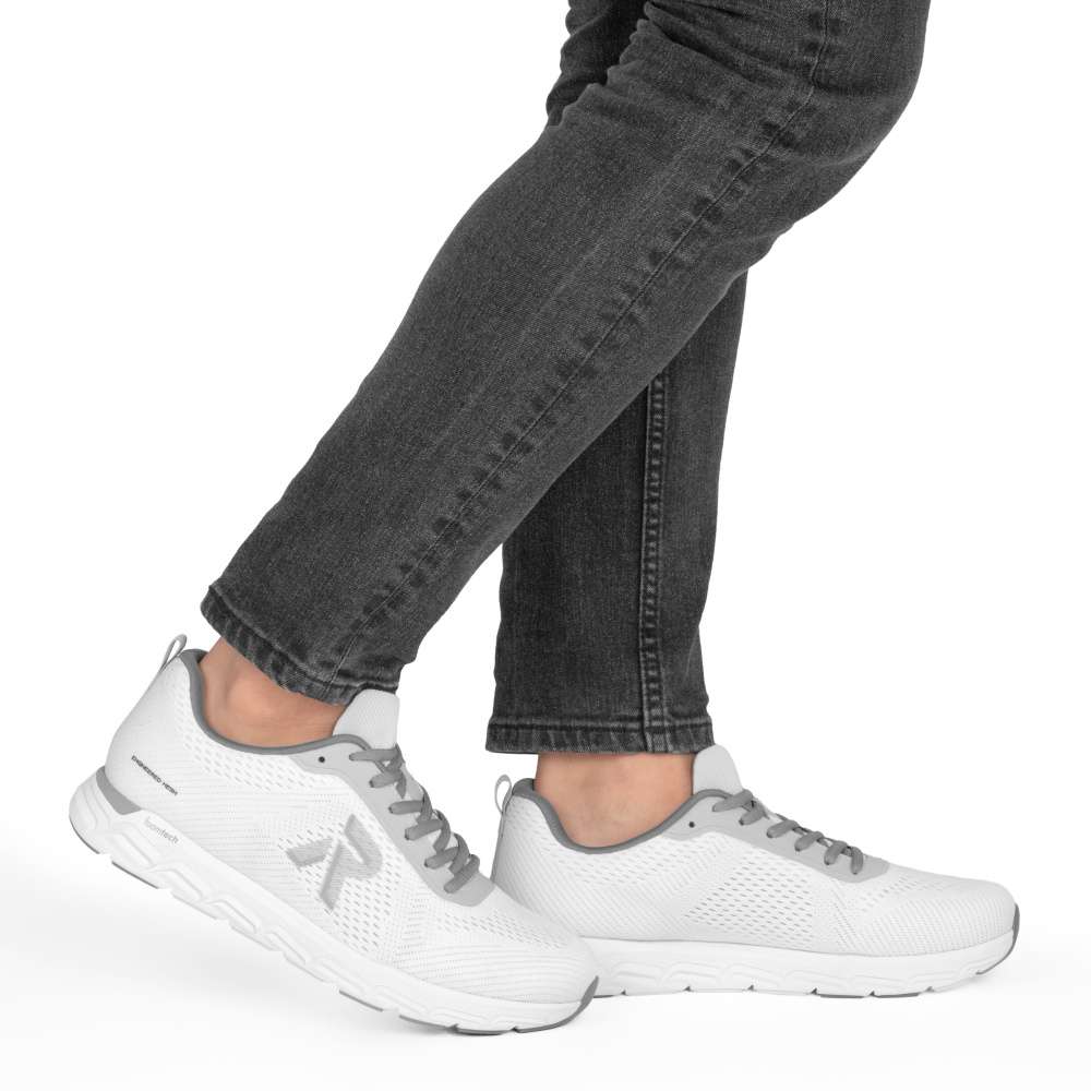 Tyto stylové tenisky značky RIEKER jsou ideální volbou pro muže, kteří si potrpí na kvalitu a stylový vzhled. Svršek bot je vytvořen kombinací různých struktur materiálů, které spolu s výrazným logem písmene „R“ na boku dodávají modelu jedinečný a vizuálně atraktivní charakter. Praktické šněrování zajišťuje přesné přizpůsobení tvaru boty vašemu chodidlu, což zajišťuje pohodlí při každém kroku. Vyjímatelná měkká stélka se dokonale přizpůsobí chodidlu, poskytuje optimální oporu a přispívá k komfortu při celodenním nošení. Další předností těchto tenisek je vyšší a odolná podešev, která tlumí nárazy a zajišťuje stabilní chůzi na různých površích. Tyto tenisky se stanou vaším spolehlivým společníkem, který doplní každý outfit a zajistí, že vaše nohy budou vždy v maximálním pohodlí a stylu. Dokonalá souhra moderního vzhledu a maximálního pohodlí díky funkčním technologiím to jsou boty RIEKER Sport.