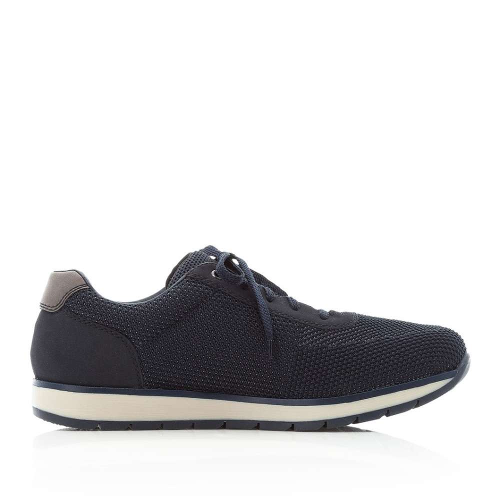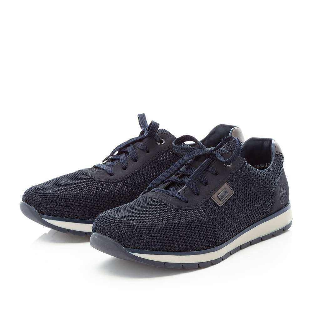 Pánské tmavě modré tenisky vyrobené z kvalitního materiálu jsou vybaveny technologií Rieker TEX, díky které je bota nepromokavá a přesto prodyšná. Pro snadné nazouvání slouží šněrování a pohodlí na každém kroku zajistí paměťová stélka šíře H. Podešev je vysoká cca 2,6 cm a vyrobena je s technologií Antistress. Tyto pánské tenisky zaručeně oceníte při každodenních pochůzkách.