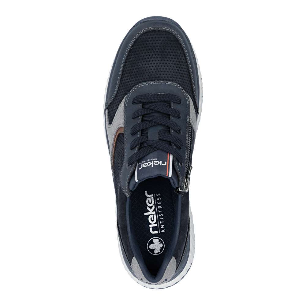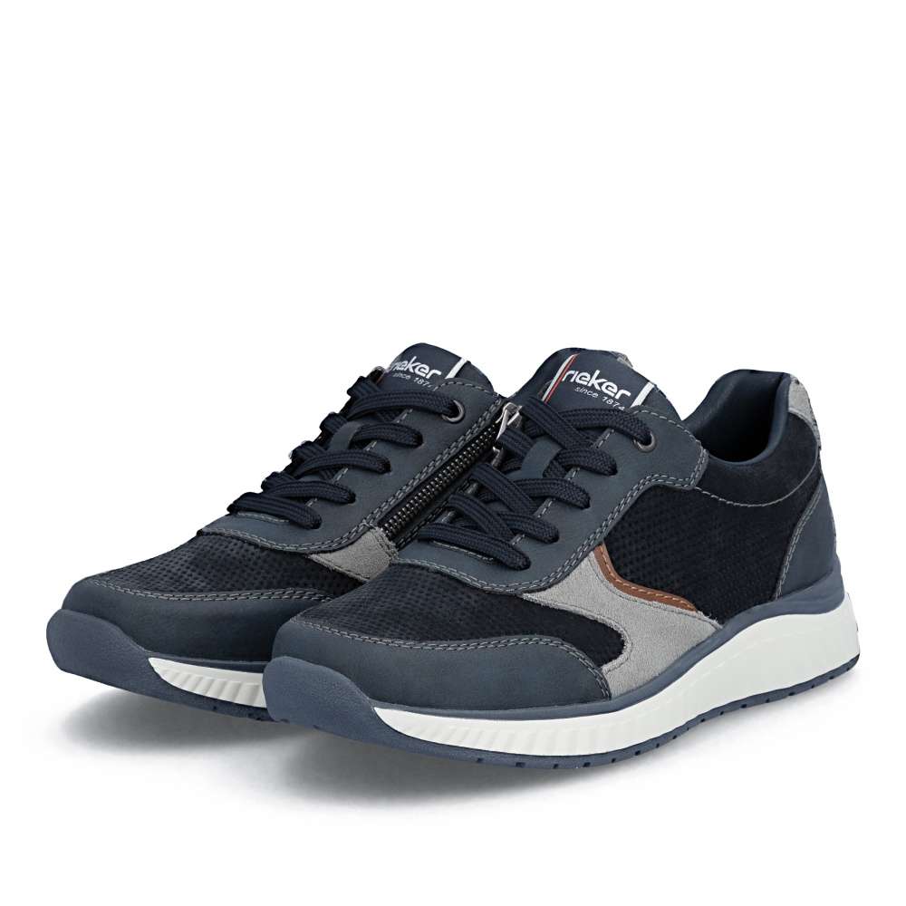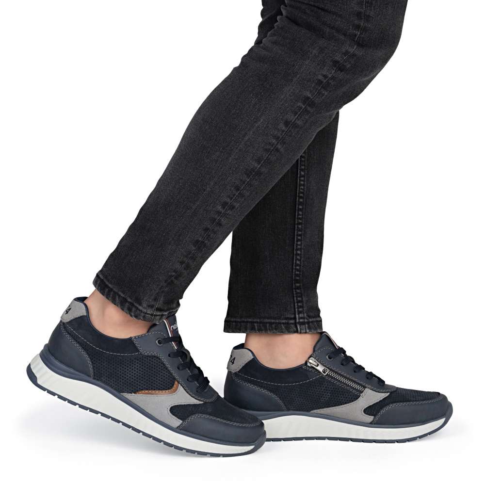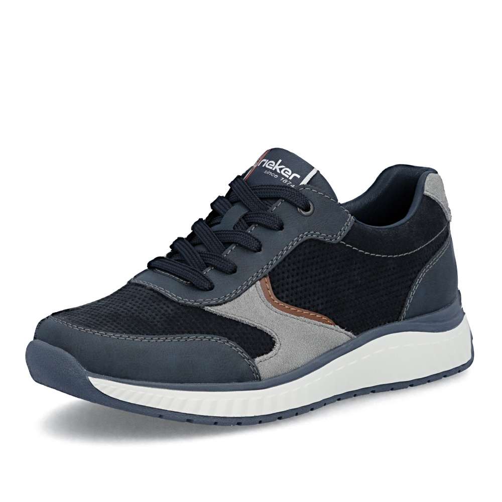 Doplňte svůj módní vzhled těmito pánskými botami RIEKER, které v sobě spojují komfort a moderní design. Kombinace materiálů a barev svršku vytváří vizuální atraktivitu, která zaujme již na první pohled a skvěle doplní váš každodenní outfit. Logo značky RIEKER decentně podtrhuje kvalitu a originální charakter tohoto modelu. Praktické šněrování v kombinaci se zipem umístěným u nártu umožňuje snadné nazouvání a dokonalé přizpůsobení boty tvaru nohy. Textilní stélka je vyjímatelná, měkká a prodyšná, což zaručuje maximální pohodlí i při delším nošení. O stabilitu a komfort při chůzi se postará flexibilní podešev, která efektivně tlumí nárazy a zároveň zvýrazňuje módní vzhled bot svým propracovaným designem. Tyto boty RIEKER jsou ideální volbou pro muže hledající praktičnost bez kompromisu ve stylu – skvěle se hodí pro běžné nošení, do města i pro volný čas, přičemž každý krok v nich bude stejně pohodlný jako stylový.