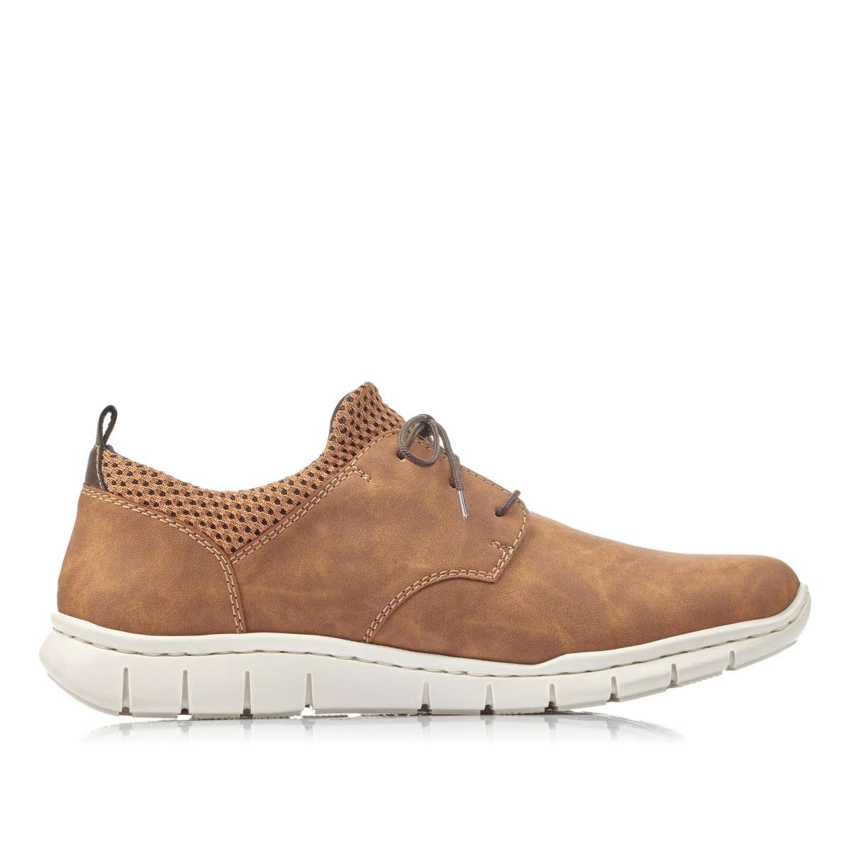 Polobotky v hnědé barvě jsou zde přímo pro Vás. Unikátní jsou díky jemně semišovému vzhledu a speciálnímu úpletu kolem kotníku. Šněrováním si pak obuv upravíte přesně dle svých požadavků. Bílá podešev a kontrastní šití jej doladí k dokonalosti. Tento model je vhodný jak k pracovním povinnostem, tak k volnočasovým procházkám.