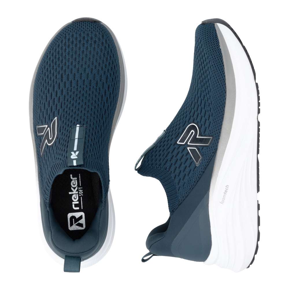 Jednoduše obujte a vyrazte do nového dne v těchto pánských teniskách RIEKER, které spojují maximální pohodlí s moderním a atraktivním designem. Tmavě modrý svršek z působivé kombinace materiálů doplňuje výrazné logo značky, které dotváří jedinečný design a vystihuje originalitu. Textilní materiál v přední části boty se přirozeně přizpůsobí tvaru nohy, což zajišťuje pohodlné a stabilní nošení bez nepříjemného tlaku, přičemž vyniká také lehkostí a výbornou prodyšností. Každý váš krok bude doprovázet měkká, vyjímatelná stélka, která poskytuje komfort během celého dne. Moderní podešev nejen podtrhuje originální vzhled boty, ale zároveň účinně tlumí nárazy a zajišťuje stabilitu při chůzi. Ideální volba obutí pro muže, kteří chtějí zaujmout stylem, ale zároveň si potrpí na pohodlí a funkčnost v každé situaci. Dokonalá souhra moderního vzhledu a maximálního pohodlí díky funkčním technologiím to jsou boty RIEKER Sport.